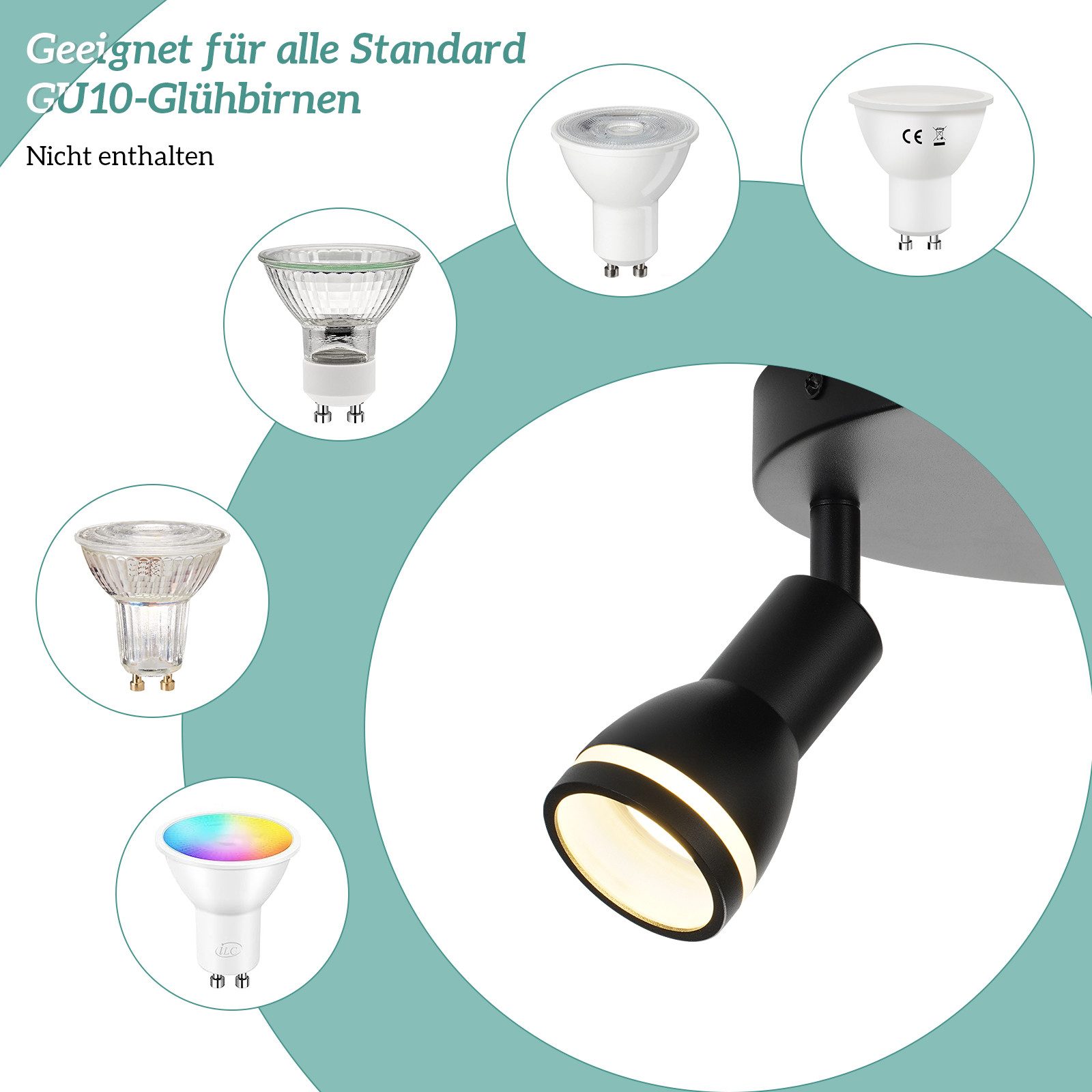 VAIHDETTAVAT POLTTIMOT: Eteisen kattovalaisin on yhteensopiva GU10-polttimoiden kanssa, joiden teho on enintään 25 W. Tarpeidesi mukaan voit valita lämpimän valkoisen, kylmän valkoisen tai RGB GU10 -polttimoita. Huomaa, että polttimot eivät sisälly toimitukseen.