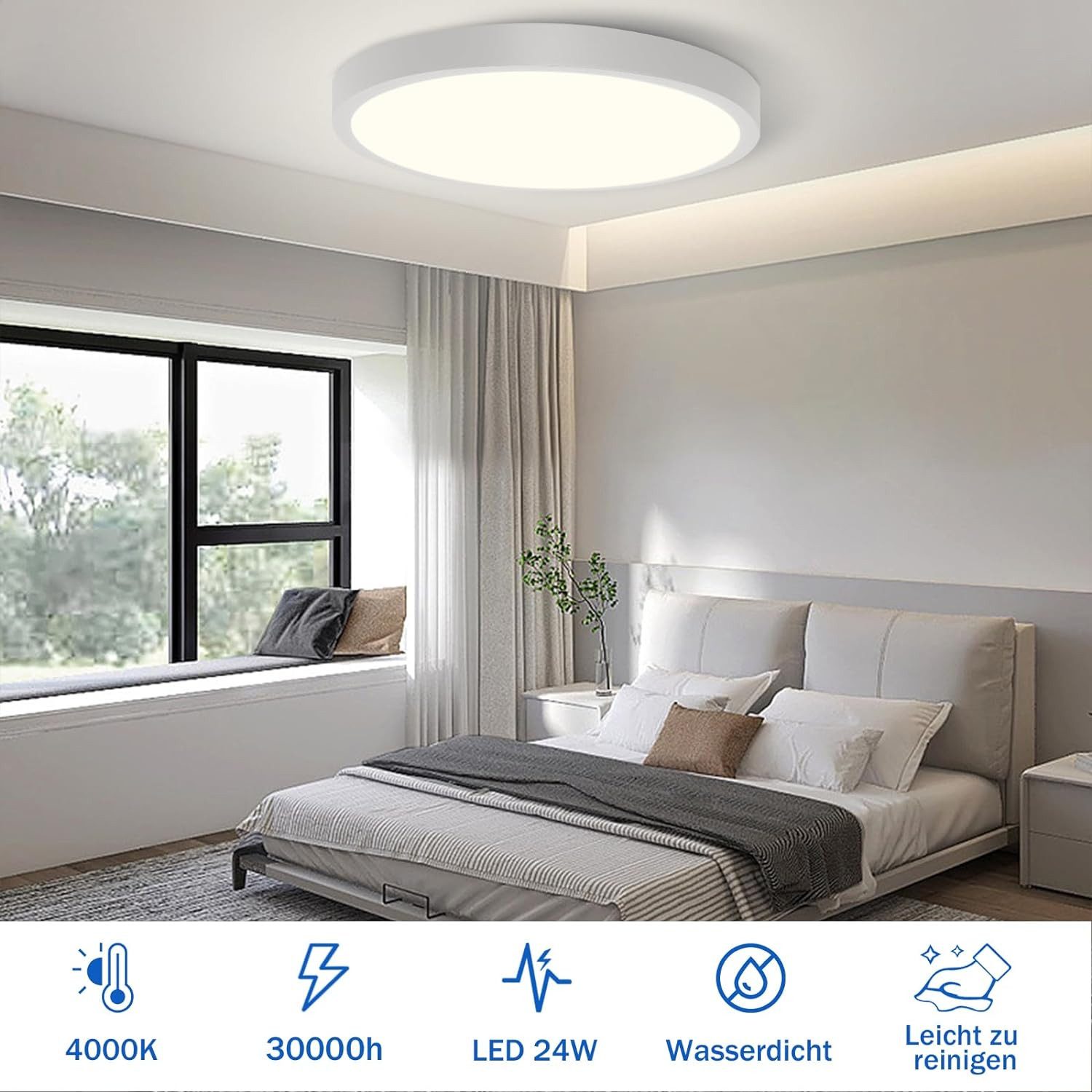 Erittäin Ohut Muotoilu ja Neutraali Valkoinen Valo:Litteä LED-olohuoneen valaisin on vain 2,1 cm paksu, mikä tekee siitä litteän ja ohuemman. Tyylikäs pyöreä muotoilu antaa lampuille elegantimman ja modernimman ilmeen, sopien täydellisesti mihin tahansa sisustustyyliin. 4000K neutraali valkoinen valo tarjoaa lämpimän ja tasaisen tunteen, mikä tekee siitä täydellisen olohuoneen tai toimiston valaisimeksi.