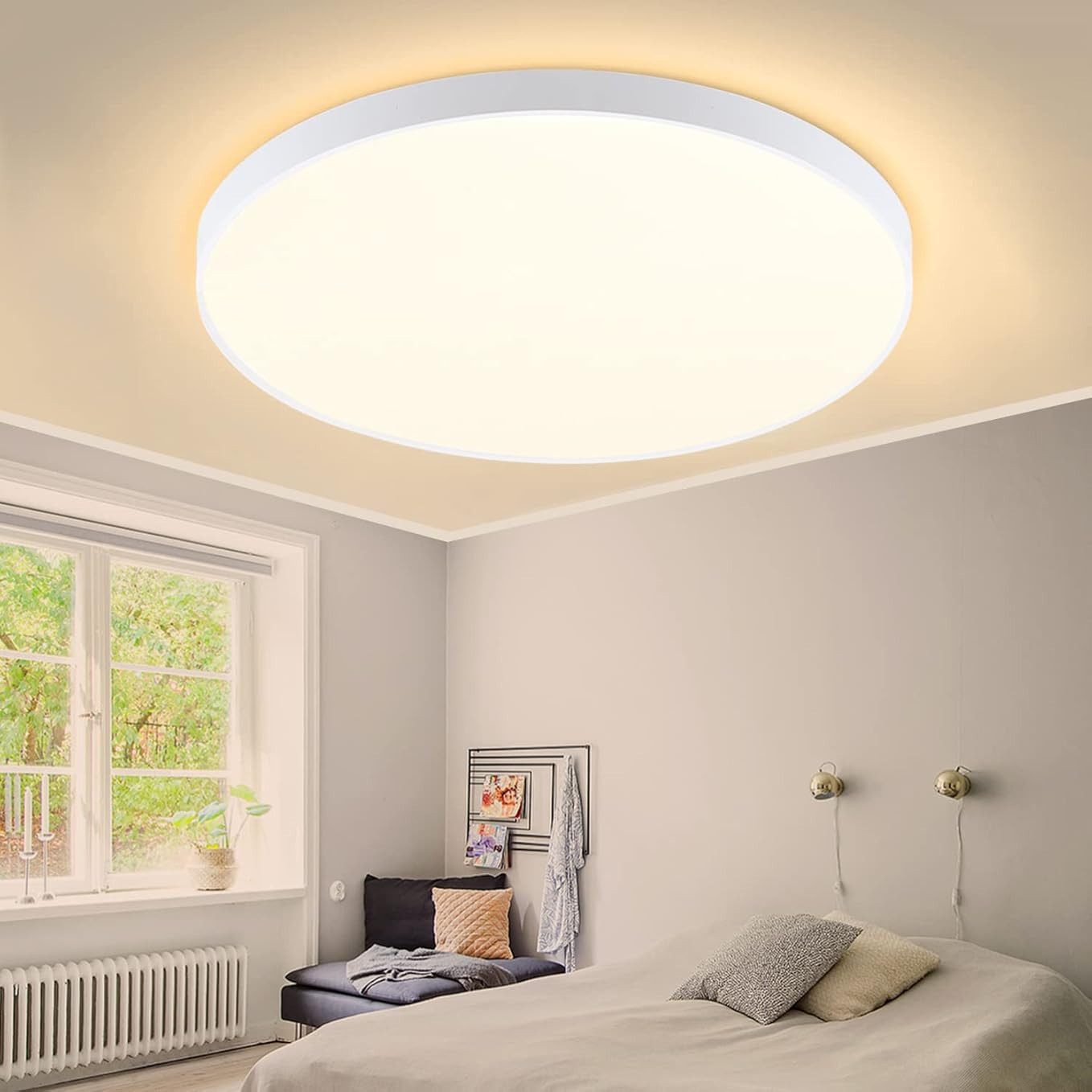 **Tyylikäs muotoilu:** Vain 2,5 cm paksu LED-kattovalaisin on erittäin ohut/minimalistinen. Sen siro/elegantti ulkonäkö sulautuu saumattomasti mihin tahansa huoneeseen. Lämmin valkoinen valo luo kodikkaan/miellyttävän ilmapiirin.