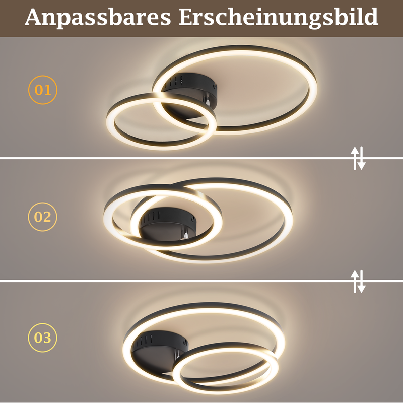 Kaksirengasmainen muotoilu: Tämä moderni kattovalaisin koostuu kahdesta avarasta renkaasta. Pieni ulkorengas pyörii 330° yksilöllisen valaistuksen luomiseksi. Ihanteellinen minkä tahansa huoneen, olohuoneen, makuuhuoneen tai keittiön, personointiin.