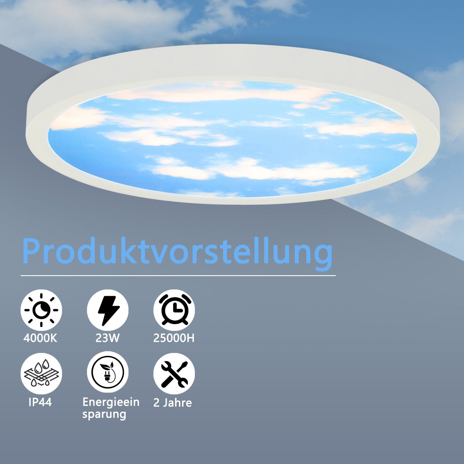Taivaallinen muotoilu: Tämä LED-kattovalaisin on valmistettu korkealaatuisesta muovista, ja siinä on tyylikäs, minimalistinen muotoilu, joka täydentää täydellisesti kattotyyliä ja sopii erilaisiin sisustuselementteihin. Koko lampunvarjostin muistuttaa avaraa taivasta. Tämä LED-kattovalaisin herättää huomiota taivasmaisemillaan ja luo miellyttävän ilmapiirin.