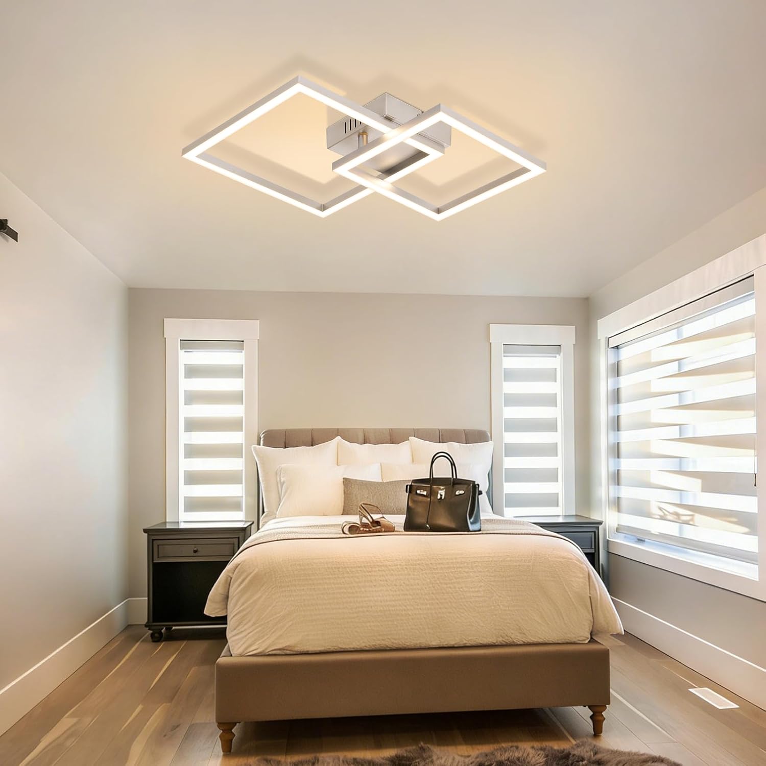 Tässä LED-kattovalaisimessa on kaksi neliönmuotoista valoelementtiä, joista pienempi on suunnattava. Voit helposti muokata valaisimen ilmettä mielesi mukaan ja luoda huoneeseesi, kuten makuuhuoneeseen, keittiöön tai muuhun tilaan, ainutlaatuisen ja persoonallisen tyylin.