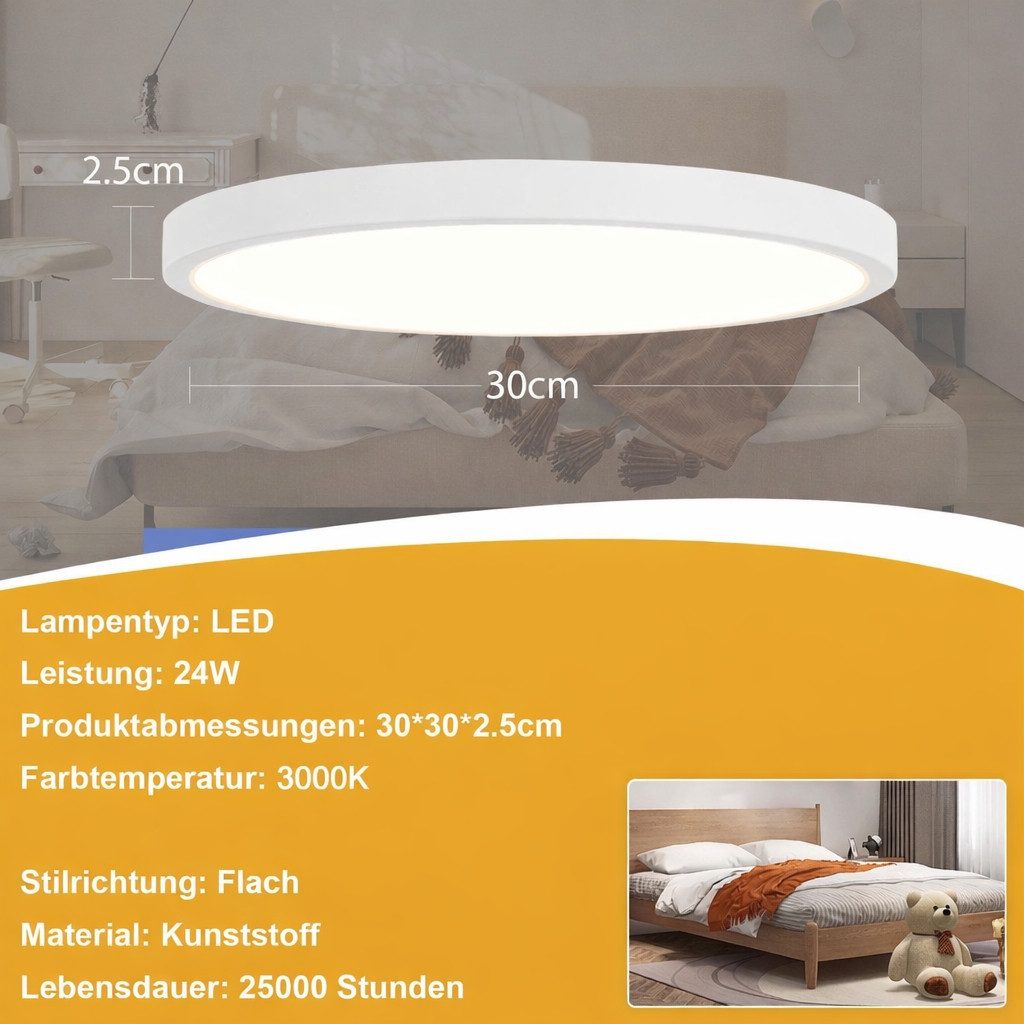 NETTLIFE LED - kattovalaisin Kylpyhuoneen Kattovalaisin, Ø30cm, makuuhuoneen Valaisin, pyöreäValkoinen, 24W, eteisen Valaisin, 3000K