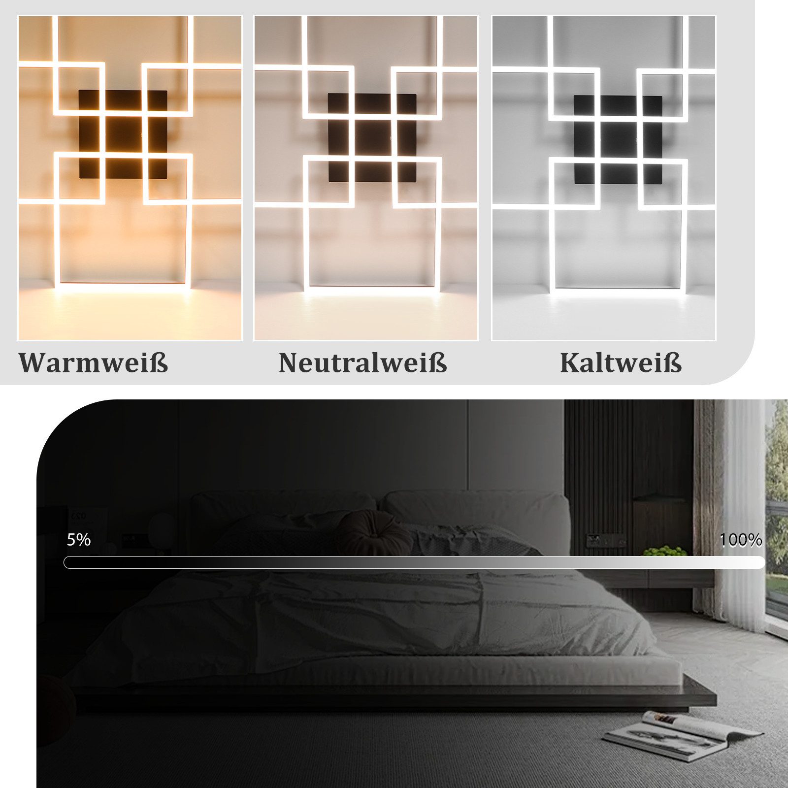 MODERNI AESTETIIKKA: Tämä LED-kattovalaisin tekee vaikutuksen tyylikkäällä, geometrisellä muotoilullaan, joka koostuu neljästä päällekkäisestä mustasta suorakulmiosta. Sitä on helppo ohjata seinäkytkimellä, ja se yhdistää minimalistisen muotoilun korkeaan toiminnallisuuteen.