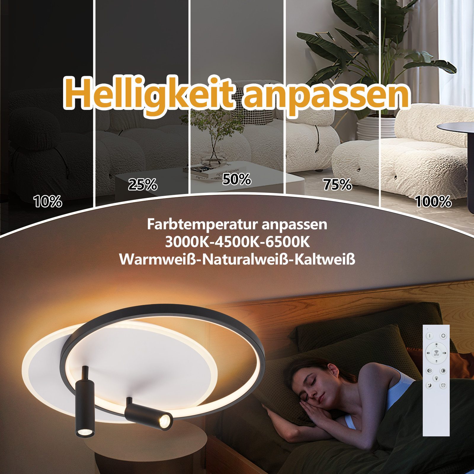 Himmennettävä valaistus erilaisiin tarpeisiin: Tämä kattovalaisin tarjoaa kolme valon väriä (lämmin valkoinen, neutraali valkoinen ja kylmä valkoinen) ja säädettävän kirkkauden, mikä tekee siitä ihanteellisen erilaisiin tunnelmiin ja tilanteisiin – täydellinen olohuoneisiin, makuuhuoneisiin tai toimistoihin.