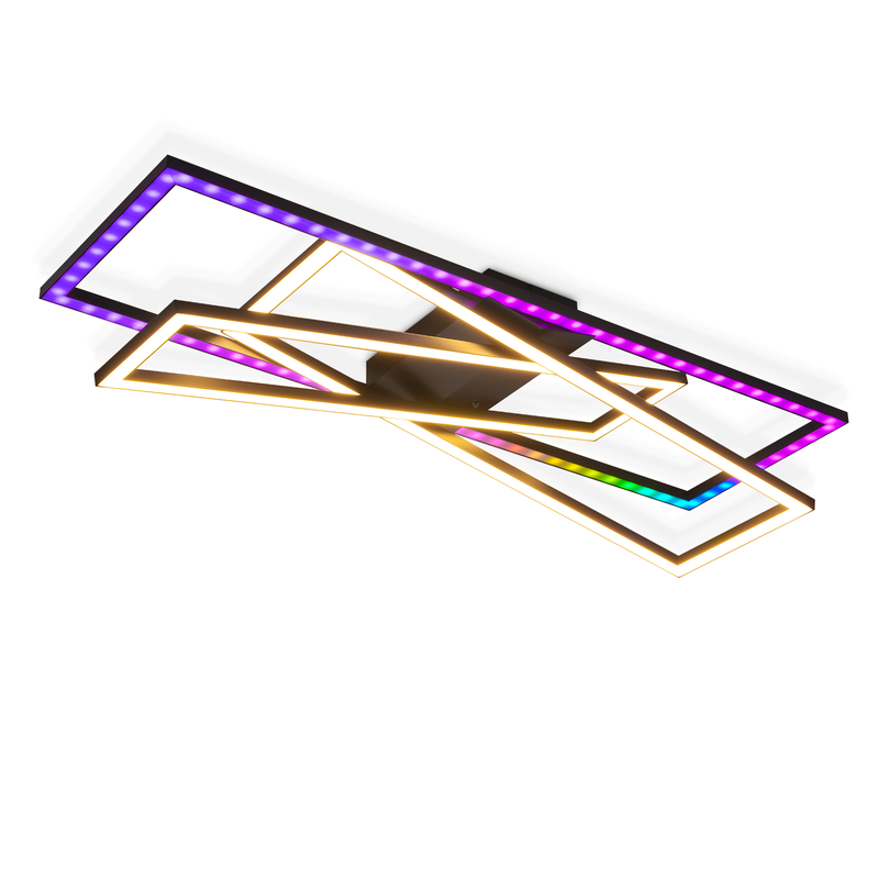 Moderni muotoilu:Lisää tyylikäs kosketus kotiisi tällä korkealaatuisella LED-kattovalaisimella, jossa on virtaviivainen geometrinen muotoilu. Keskusvalonlähde on RGB-tilassa, ja kahden muun alumiinikehyksen valonlähde on CCT-tilassa, mikä mahdollistaa valaistuksen mukauttamisen omien mieltymystesi mukaan. Nauti tämän kattovalaisimen pitkäaikaisesta ilosta.
