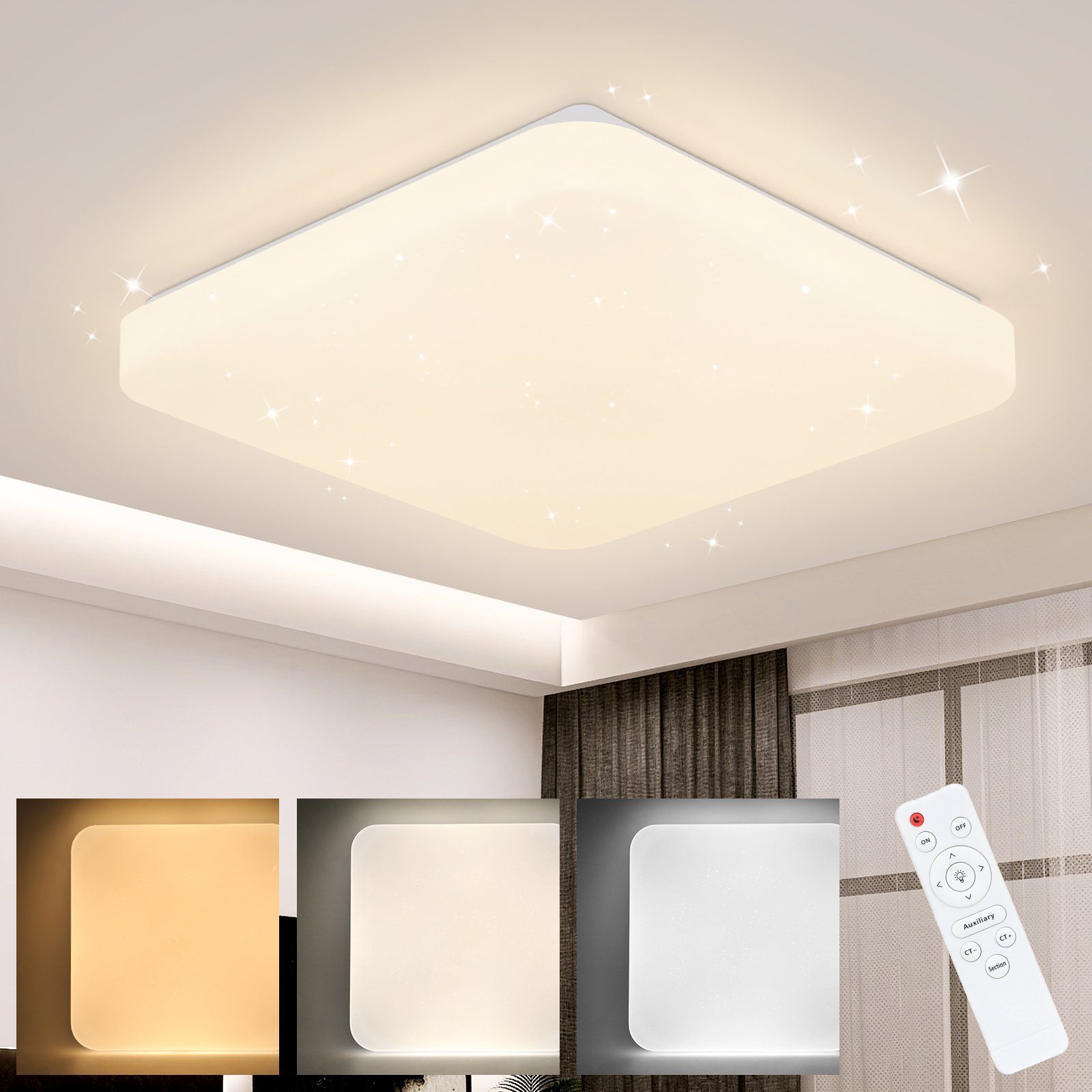 Tähtitaivasmuotoilu: Tämä LED-kattovalaisin on valmistettu korkealaatuisesta muovista ja raudasta. Se sulautuu täydellisesti kattoon tyylikkään ja yksinkertaisen muotoilunsa ansiosta, ja se sopii monenlaisiin sisustustyyleihin. Lampunvarjostin koostuu lukemattomista pienistä läpikuultavista pisteistä, joiden läpi valo pääsee esteettä loistamaan, mikä antaa koko lampunvarjostimelle ainutlaatuisen tähtitaivasefektin.
