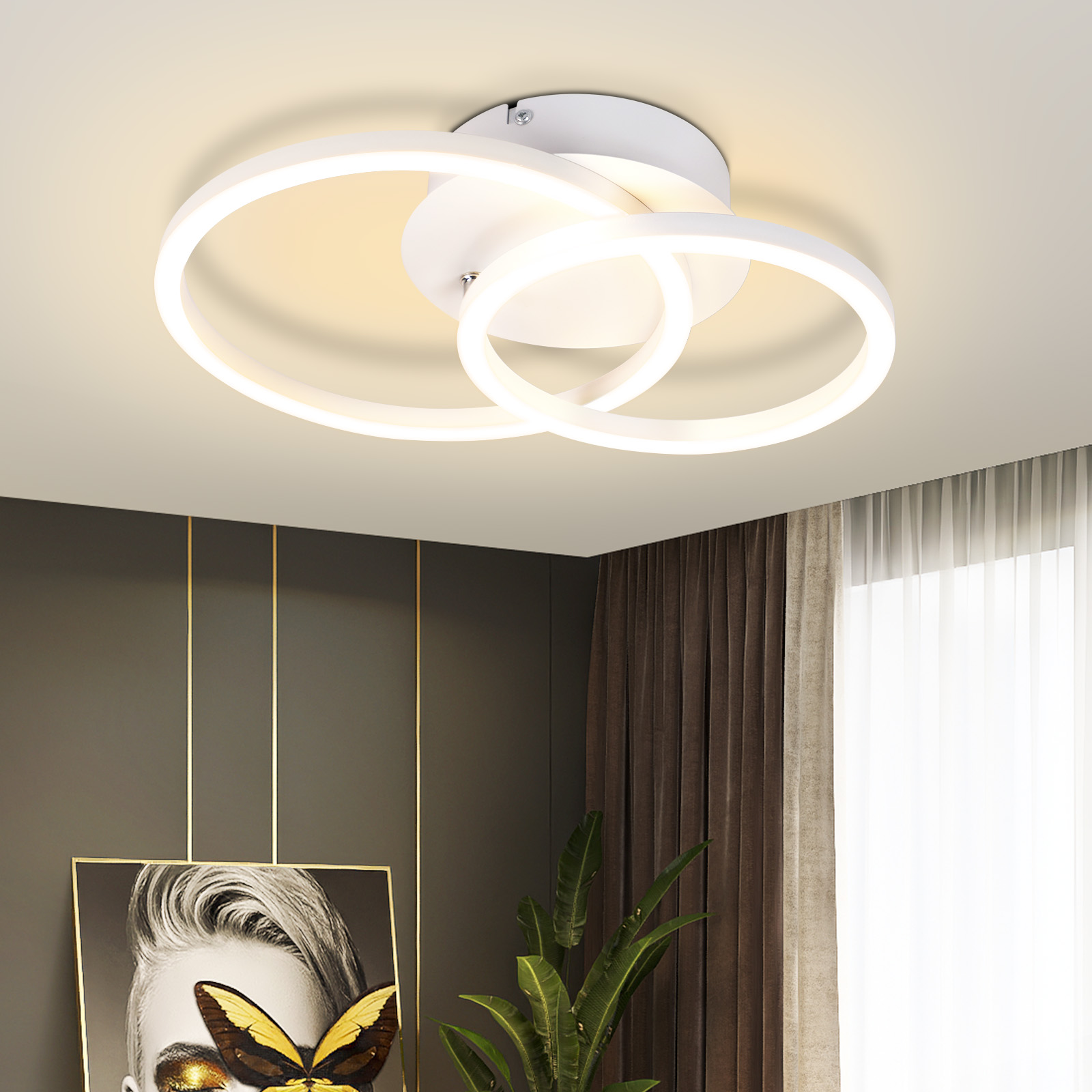 Helppo asennus: Tällä modernilla rengasmaisella LED-kattovalaisimella on yksinkertainen rakenne. Kaksi rengasta on asennettu ristiin ja ne on helppo kiinnittää kattoon. Katso tarkemmat tiedot johdotusasennuksesta käyttöohjeesta.