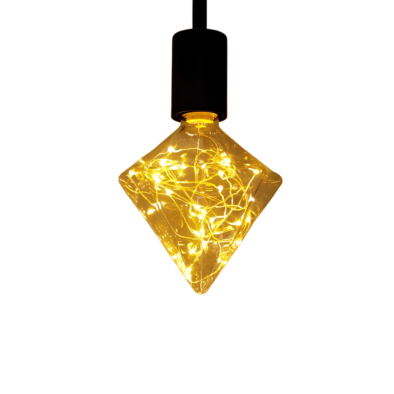 Kaunis timanttimuotoilu ja ainutlaatuiset valosarjat: Tässä timantinmuotoisessa läpinäkyvässä lasivalaisimessa on koristeelliset metallilangat, joissa ohuet valolangat on järjestetty epäsäännöllisesti ja vapaasti. Sytytettynä se tuo mieleen lämpimän tähden kuvan. Se lisää esteettistä silausta kaikkiin kattokruunuihin, riippuvalaisimiin ja seinävalaisimiin kodissasi.