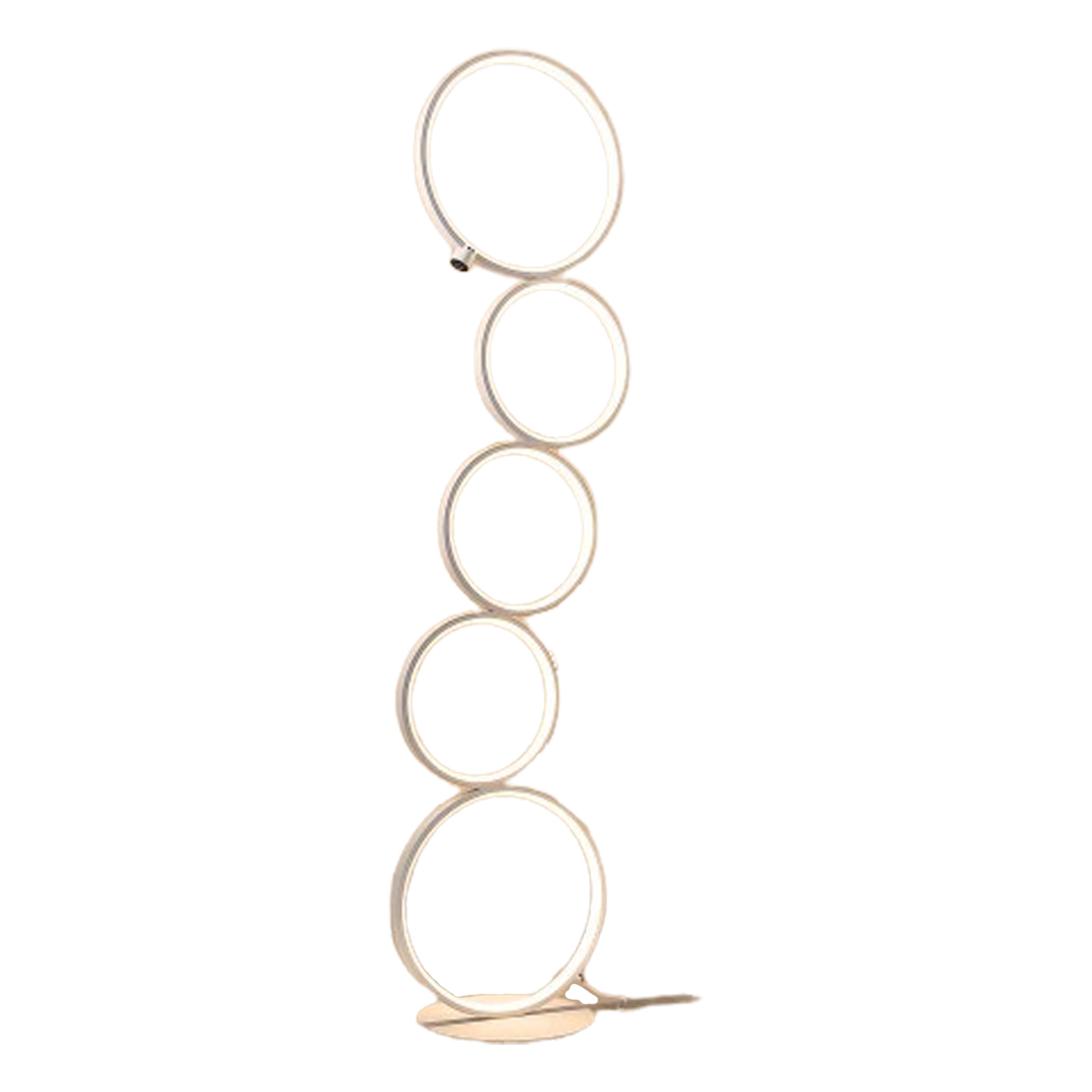 Moderni ja elegantti muotoilu: Viisi alumiinirengasta on taitavasti yhdistetty luomaan selkeän ja harmonisen lattiavalaisimen, joka luo tietynlaista epäsymmetriaa, personoi ulkonäköä ja tarjoaa houkuttelevan ilmeen, joka sopii kaikkiin elämäntyyleihin. Korkealaatuiset materiaalit: Lattiavalaisimen runko on valmistettu hienostuneesta alumiinista ja silikageelistä, jotka ovat kestäviä ja helppoja puhdistaa. Pysyvästi integroitu LED-moduuli korostaa tämän valaisimen miellyttävää valaistuskokemusta 32 watin teholla ja jopa 2400 lumenin lämpimän valkoisella valolla. Materiaalien harmonia tekee tästä LED-lattiavalaisimesta todellisen kohokohdan. Helppo kosketusohjaus lapsille: Lattiavalaisimessa on kosketushimmennin, joten se voidaan kytkeä päälle ja pois päältä, säätää ja kirkkautta voidaan säätää 100 %:sta 50 %:iin ja 25 %:iin koskettamalla kytkintä. Näin voit luoda erilaisia valaistustunnelmia tarpeidesi mukaan ja luoda kodikkaan tunnelman kotiisi silmänräpäyksessä. Liukumaton pohja ja 180 cm:n johdon pituus: Ø200 mm:n liukumattoman pohjan ansiosta valaisin voidaan sijoittaa turvallisesti lattialle estämään vahingossa tapahtuvat putoamiset; 5-liekkisenä lattiavalaisimena pitkä johto (180 cm) mahdollistaa tämän lattiavalaisimen sijoittamisen monin eri tavoin, mikä sopii aina lisävalaistukseksi olohuoneeseen ja ruokailutilaan illalla. Se on myös suosittu pöytävalaisimena. Tekniset tiedot: Valaisimen koko: 110 * 26 * 20 cm, pohjan koko: 20 * 0,4 cm, teho: 32 W, lumenit: maks. 2400 lm, liekkien lukumäärä: 5 liekkiä, johdon pituus: 1,8 m, himmennettävä: kyllä, värilämpötila: 3000 K, valonlähde: pysyvästi integroitu LED. Jännite: 220 V-240 V. Tuotetta on äskettäin kunnostettu ja modernisoitu, ja on olemassa tapauksia, joissa energiatehokkuusarvot eivät vastaa tietoja.
