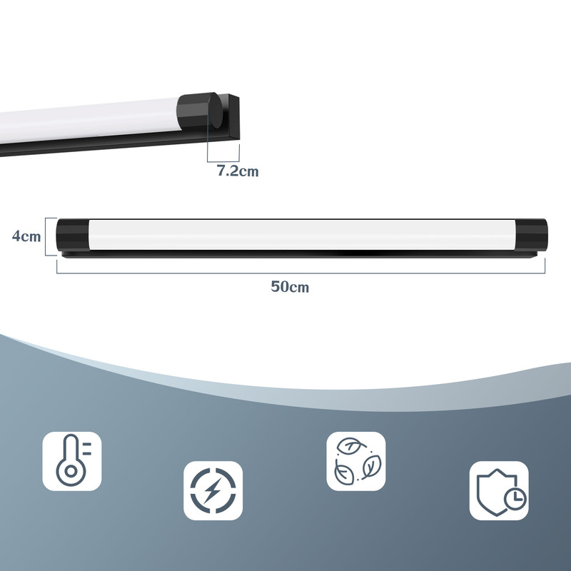 NETTLIFE LED-peilivalaisin, 50 cm, 10 W, musta. IP44, roiskesuojattu, 4000K neutraali valkoinen. Säädettävä seinä- tai kaapinvalaisin kylpyhuoneeseen, keittiöön tai kellariin