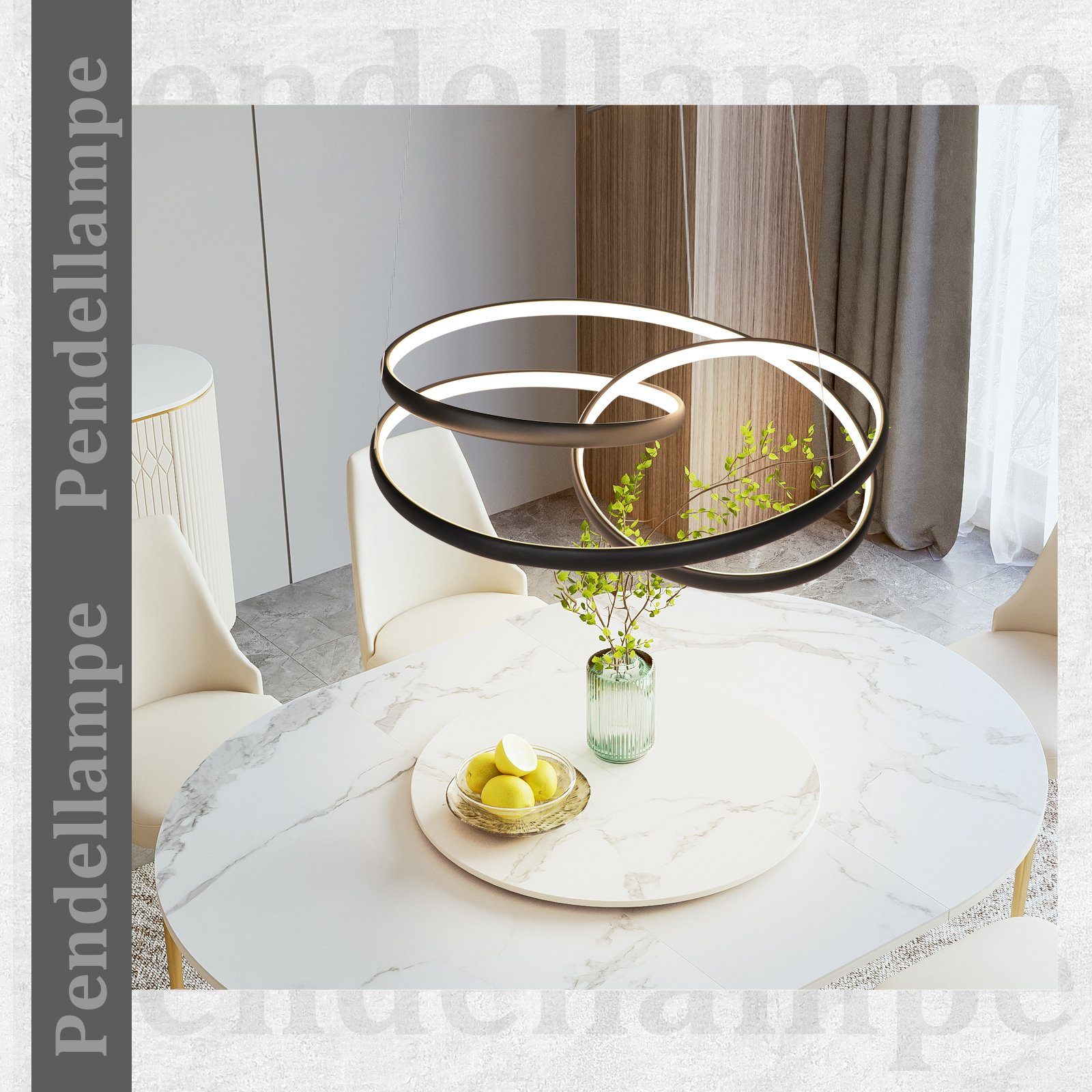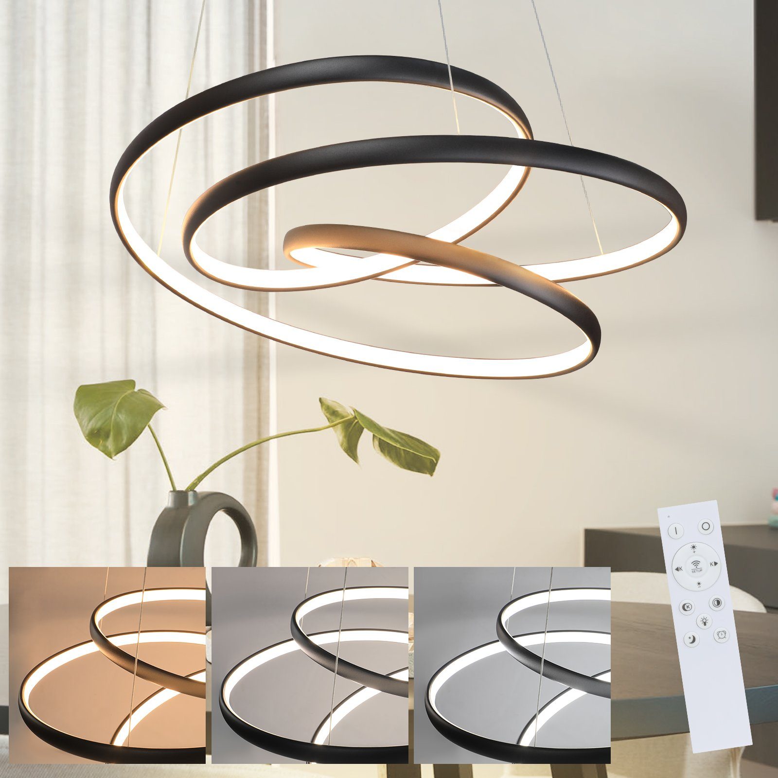 HIMMENNYS TEKNOLOGIA:: Tämä pyöreä riippuvalaisin käyttää portaatonta himmennystekniikkaa, jonka avulla voit vapaasti säätää valon värilämpötilaa tarpeidesi mukaan eri tilanteissa. Voit valita useista värilämpötiloista, lämpimästä 3000 K:sta viileään 6500 K:een, luodaksesi valaistustehosteen. Tarkkojen säätöjen avulla voit saavuttaa ihanteellisen valaistustehosteen, mikä saa sinut tuntemaan olosi mukavaksi valon kanssa eri tilanteissa.