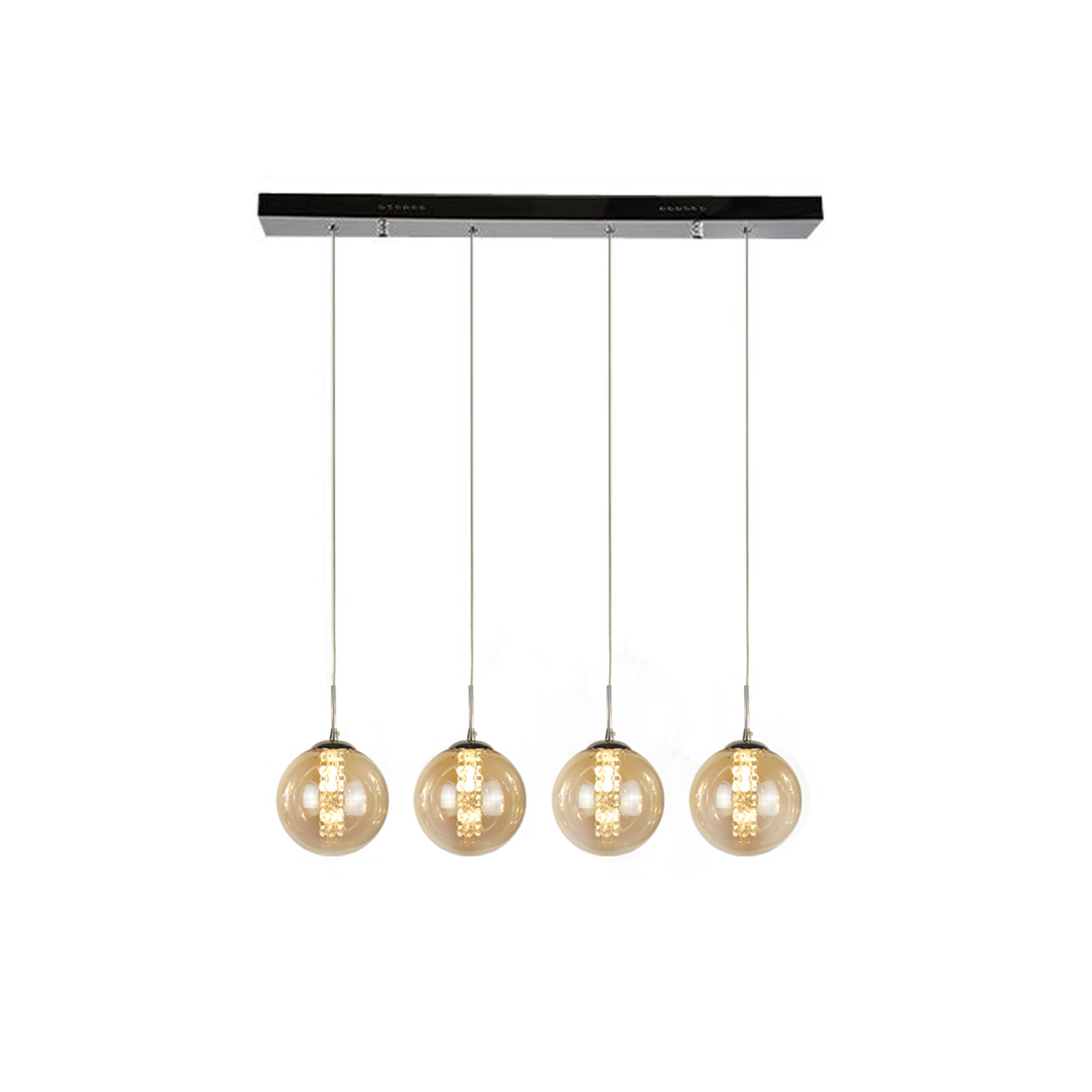 Muodikas muotoilu: Lasipalloriipusvalaisin, moderni, loft- ja maalaistyyli, sopii kaikkiin sisustustyyleihin ja luo sopivan huoneen tunnelman, sekä valaistukseen että sisustukseen. Tuotteen mitat - halkaisija ø15 cm (jokainen pallo on meripihkanvärinen), kattopaneelin koko: 70*10*2,5 cm, jännite: 220-240 V, kaapelin pituus: 1,5 m. Korkeussäädettävä - Tyylikäs riippuvalaisin korkealaatuisella lasirungolla. Pisin riippuvalaisin on 1,5 metriä. Tarvittaessa riippuvalaisimen korkeutta voidaan säätää 80 cm:stä 150 cm:iin, ja se sopii erityisesti portaikkoihin tai julkisiin rakennuksiin. Lämmin tunnelma - LED-riippuvalaisin on tervetullut lisä huoneisiisi. Modernin mutta yksinkertaisen muotoilunsa ansiosta riippuvalaisin sopii moniin tiloihin, kuten: B. Olohuone, eteinen, keittiö, makuuhuone ja lastenhuone.