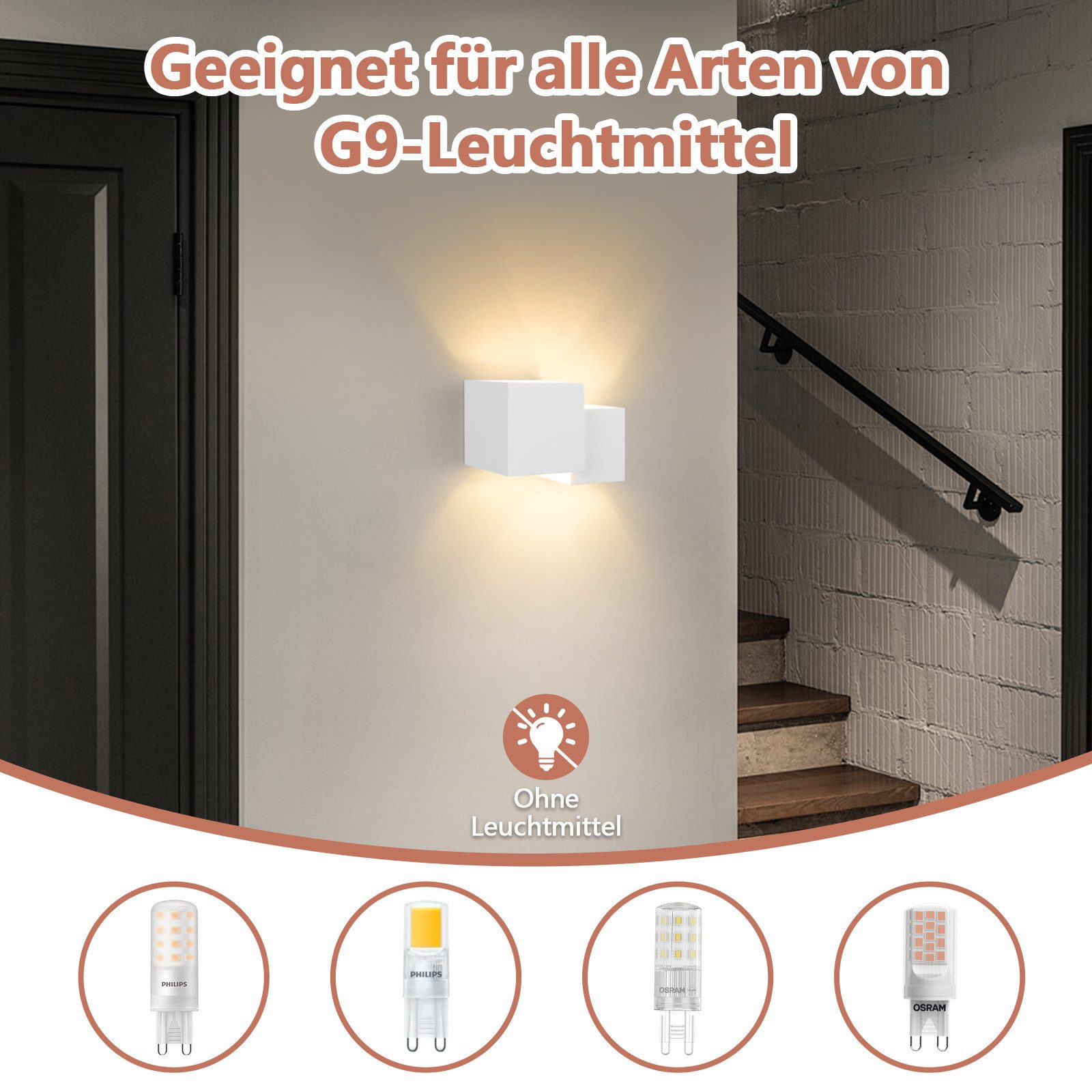 Vaihdettava G9-polttimo: Sopii G9-polttimoille (ei sisälly). Seinävalaisimen ylä- ja alaosan valaistustehosteiden ansiosta voit valita oikean polttimon erilaisiin valaistustarpeisiin ja luoda mukavan seinävalaistuksen.