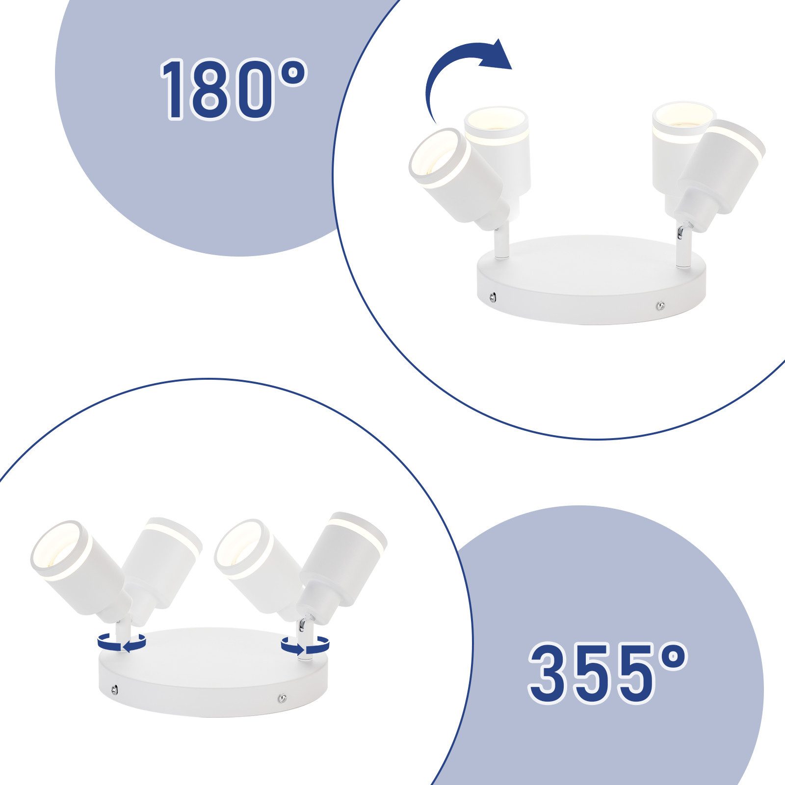 Kääntyvä ja pyörivä: Kattovalaisimia voidaan säätää 180° ylös ja alas ja pyörittää 355°. Näin valo voidaan suunnata tarkasti huoneen eri alueille ja mukauttaa yksilöllisiin valaistustarpeisiisi luoden mukavan valaistuksen ilmapiirin.
