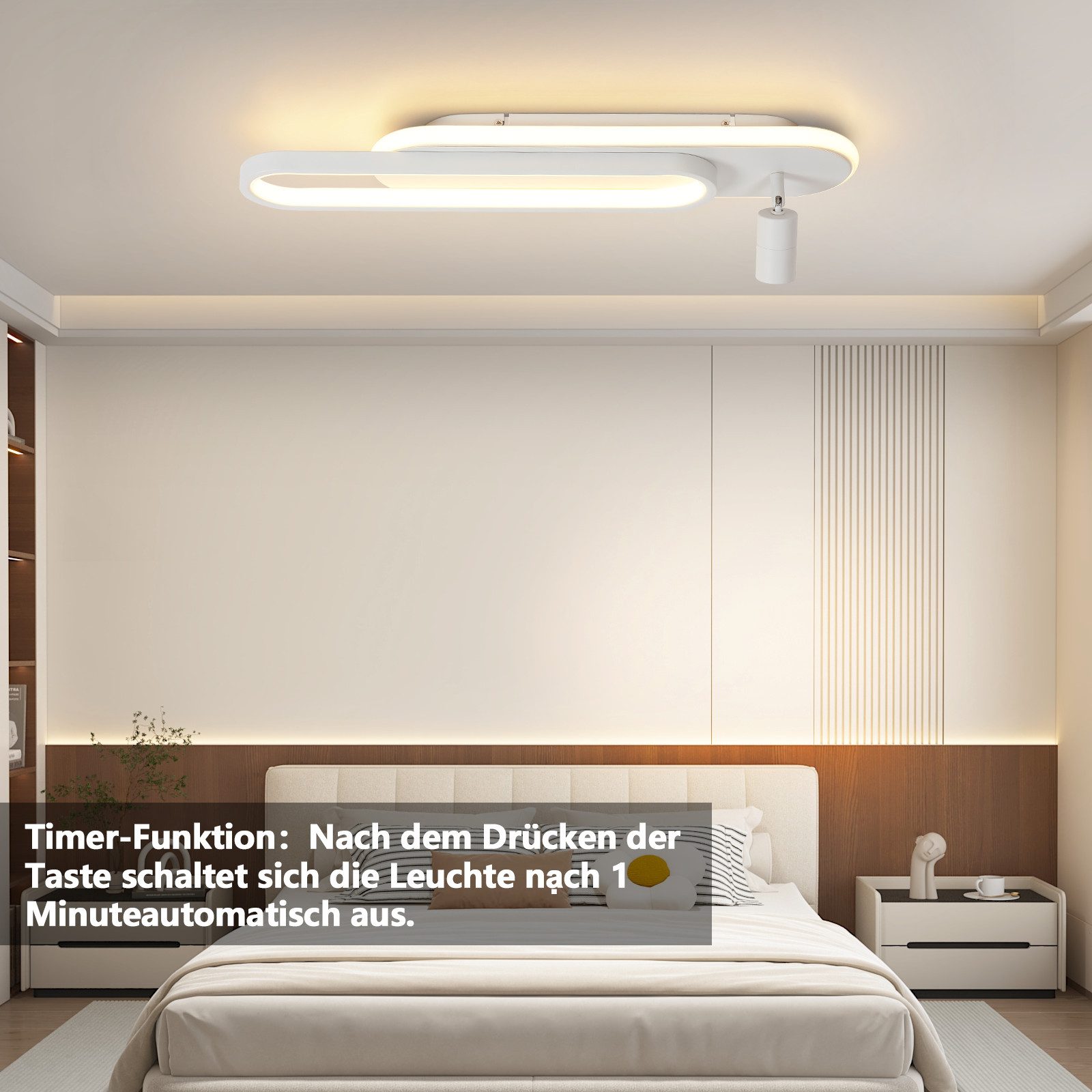 Kattovalaisin kohdevalolla: Tässä LED-kattovalaisimessa on uusi muotoilu. Sen rungossa on 180° säädettävä kohdevalo valaisemaan pimeitä alueita. Ihanteellinen keittiöihin, gallerioihin, toimistoihin jne. Valaistus kaukosäätimellä: Tämä olohuoneen kattovalaisin tarjoaa jatkuvasti säädettävän valon voimakkuuden (10–100 %) ja värilämpötilan (3000–6500 K). Yksinkertainen kaukosäätimen painallus luo lämpimän tunnelman! Tämä lääketieteellisesti testattu LED-kattovalaisin takaa 100 % välkkymättömän ja häikäisemättömän valaistuksen, joka on hellävarainen lasten ja vanhusten silmille. Monipuolinen käyttö ja ajastin: Tässä makuuhuoneen kattovalaisimessa on ajastin. Paina ajastinta sammuttaaksesi sen automaattisesti minuutin kuluttua. Etsitpä sitten lämmintä valaistusta makuuhuoneeseen, tehokasta valaistusta keittiöön tai eleganttia tunnelmaa olohuoneeseen, tämä LED-kattovalaisin tarjoaa täydellisen valaistusvaikutuksen. Tuotteen ominaisuudet: Mitat: 60 x 13 x 15,5 cm; Lumenit: 3700; Teho: 46 W; Jännite: 230 V; Himmennys: 10–100 %; Värilämpötila: 3000 K–6500 K; Suojausluokka: IP20. Korkealaatuiset materiaalit: Tämä olohuoneen valaisin on valmistettu valikoiduista metallimateriaaleista ja silikageelistä, mikä takaa kestävyyden ja estetiikan. Erinomainen lämmönpoisto varmistaa LED-sirujen korkean läpinäkyvyyden ja todenmukaiset värit. Tämä LED-kattovalaisin sopii helposti kaikentyyppisiin kattoihin: liitä vain kaapeli ja ruuvaa valo kattoon.