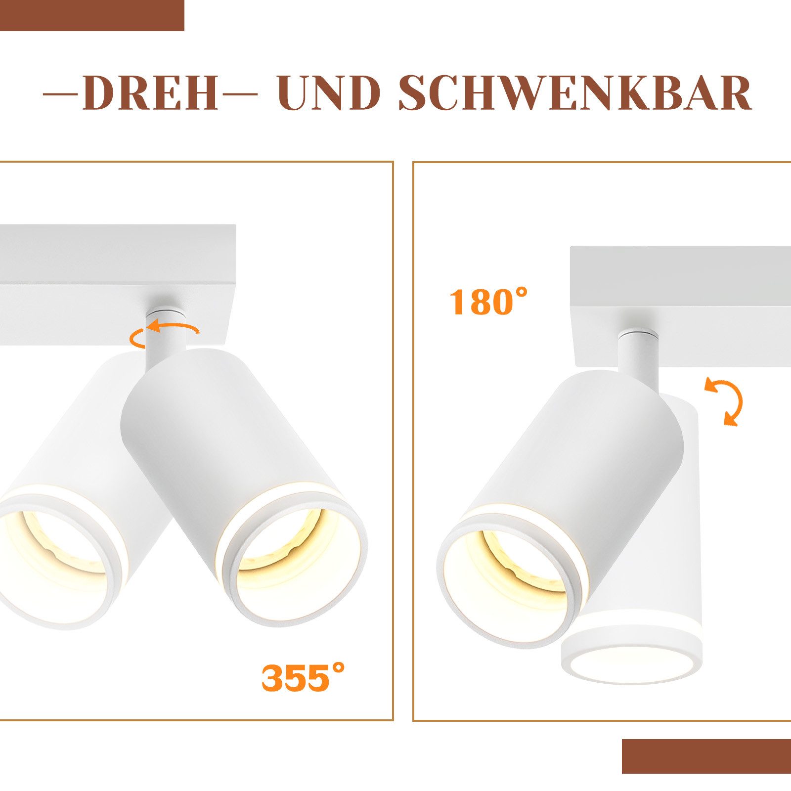 SUURI JOUSTAVUUS: Kattospottivalaisinta voidaan säätää 180° ylös ja alas sekä kääntää 355°. Tämä mahdollistaa huoneen eri alueiden kohdennetun valaistuksen ja vastaa yksilöllisiin valaistustarpeisiin luoden miellyttävän valaistusympäristön.