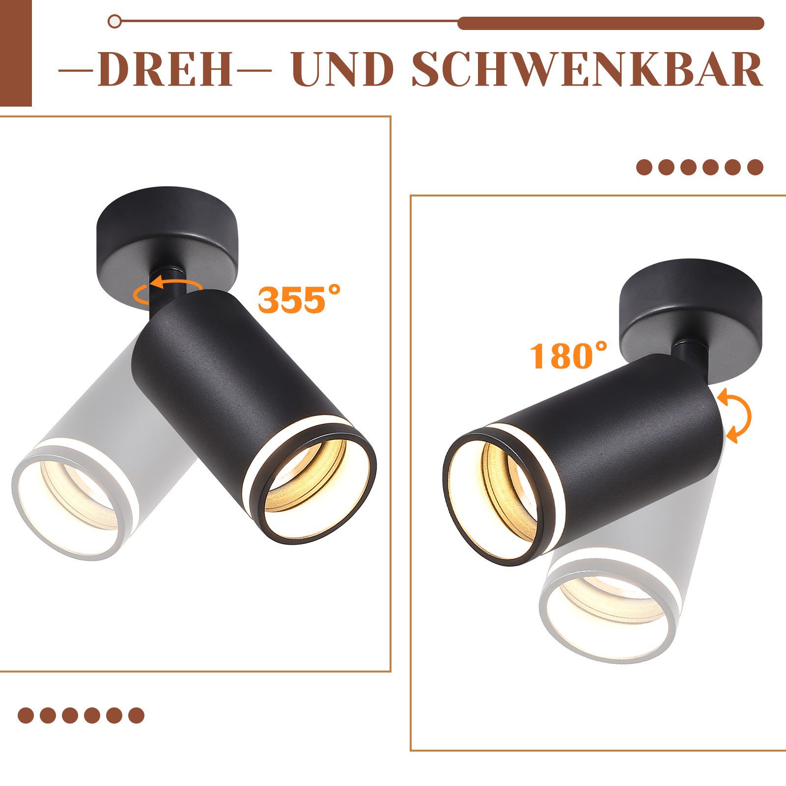 VAIHDETTAVAT POLTTIMOT: Kattospotit ovat yhteensopivia GU10-polttimoiden kanssa, joiden maksimiteho on 40 W. Tarpeidesi mukaan voit valita lämpimän valkoisen, kylmän valkoisen tai RGB GU10-polttimon pohjan. Huomaa: Polttimot eivät sisälly toimitukseen.