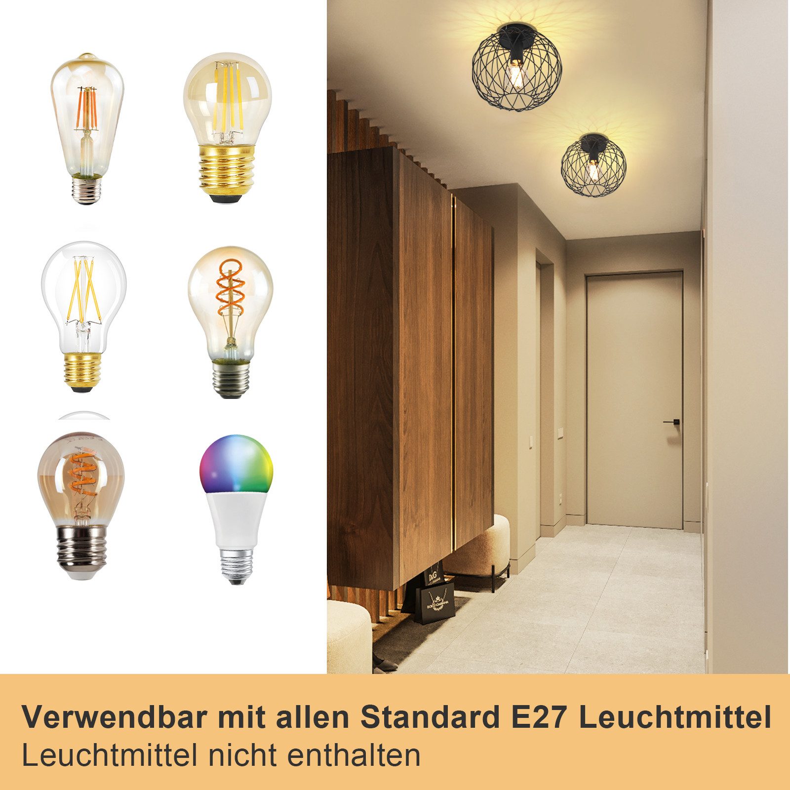 Korkea laatu: Kestävä ja vankka Tämä E27-kattovalaisin on valmistettu raudasta ja siinä on maalattu pinta. Se on korroosionkestävä ja tarjoaa pitkän käyttöiän. Eteisen valaisimessa on luotettava hapettumissuoja ja värinkesto, mikä tekee siitä luotettavan ja kestävän valaisimen.