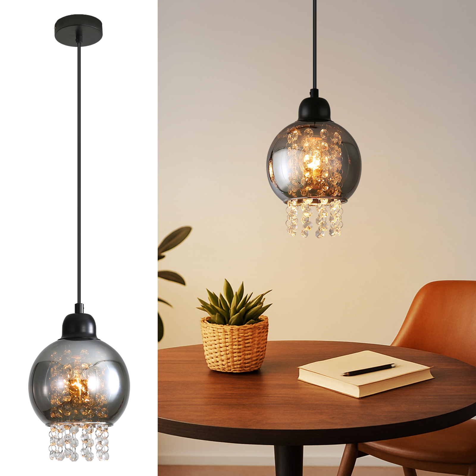 NETTLIFE Musta kristalliriippuvalaisin, ruokapöydälle, ...