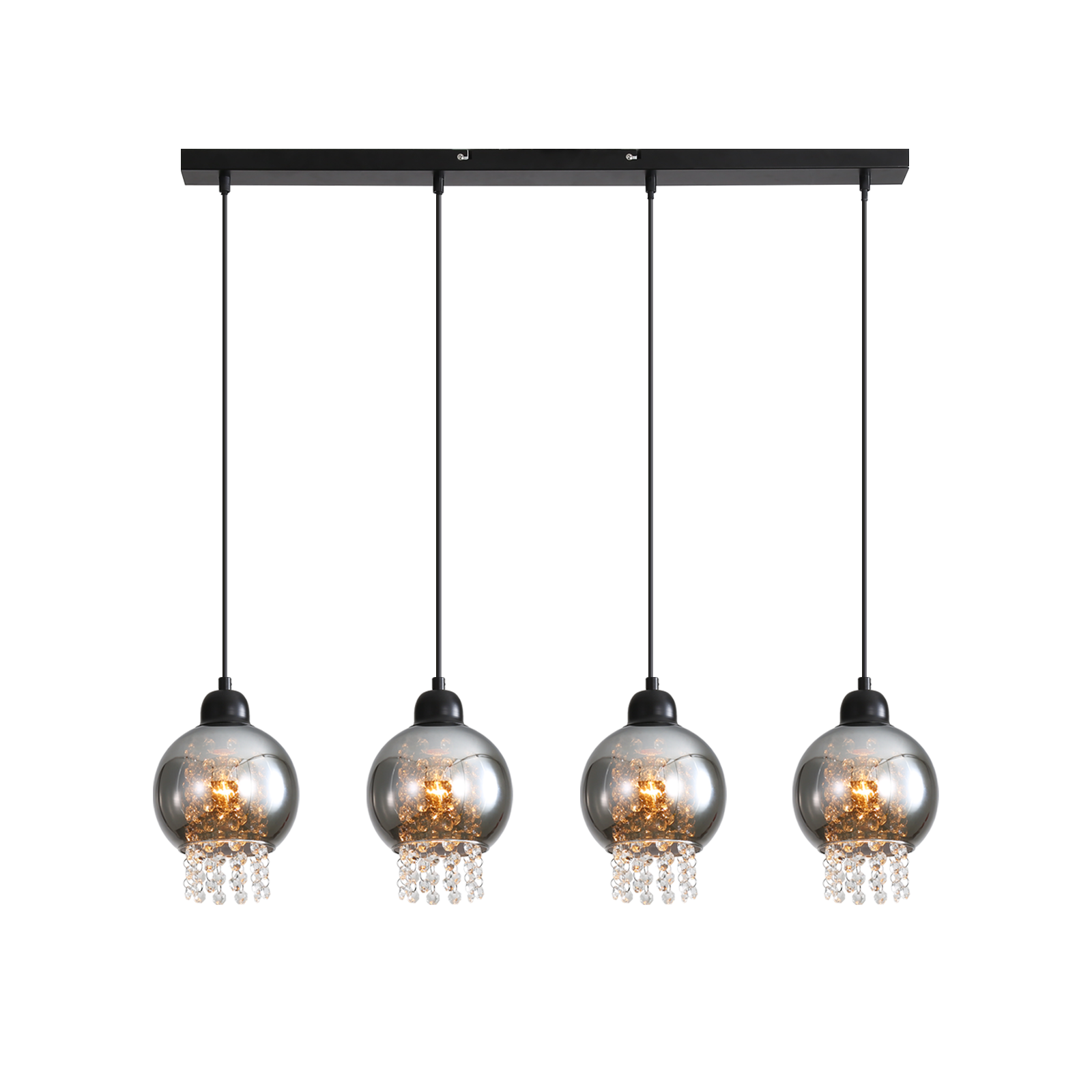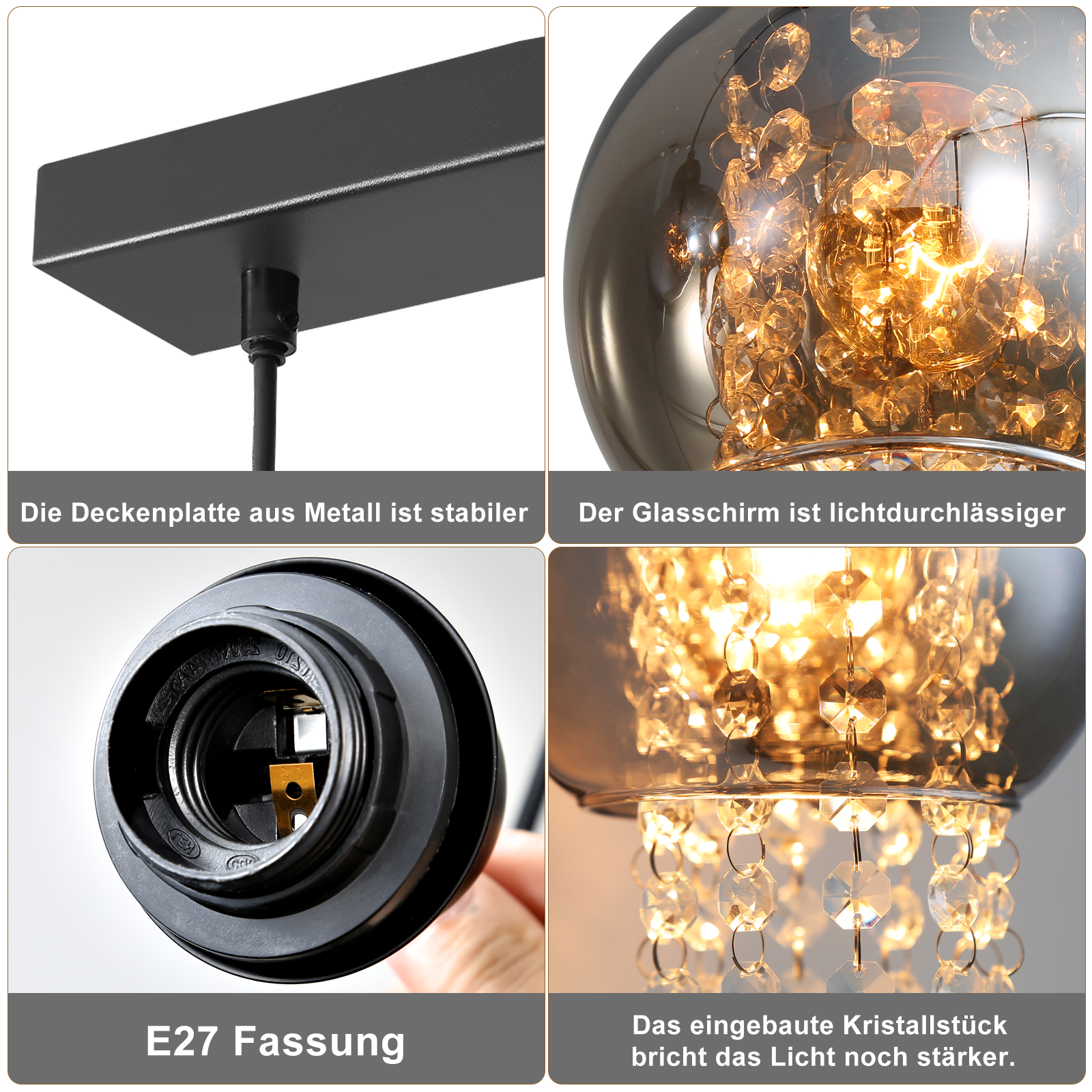 Materiaali: Tämä riippuvalaisin on valmistettu käsin poltetusta lasista, huolellisesti leikatuista ja kiillotetuista kristallilampuista sekä kestävästä raudasta. Kristallit eivät ainoastaan paranna valon taittumista, mikä tekee valosta pehmeämmän ja kerroksellisemman, vaan antavat myös riippuvalaisimelle jalostuneen mutta minimalistisen esteettisyyden. Lisäksi riippuvalaisimen päällä oleva rautalevy lisää rakenteen vakautta ja tekee siitä kestävämmän.