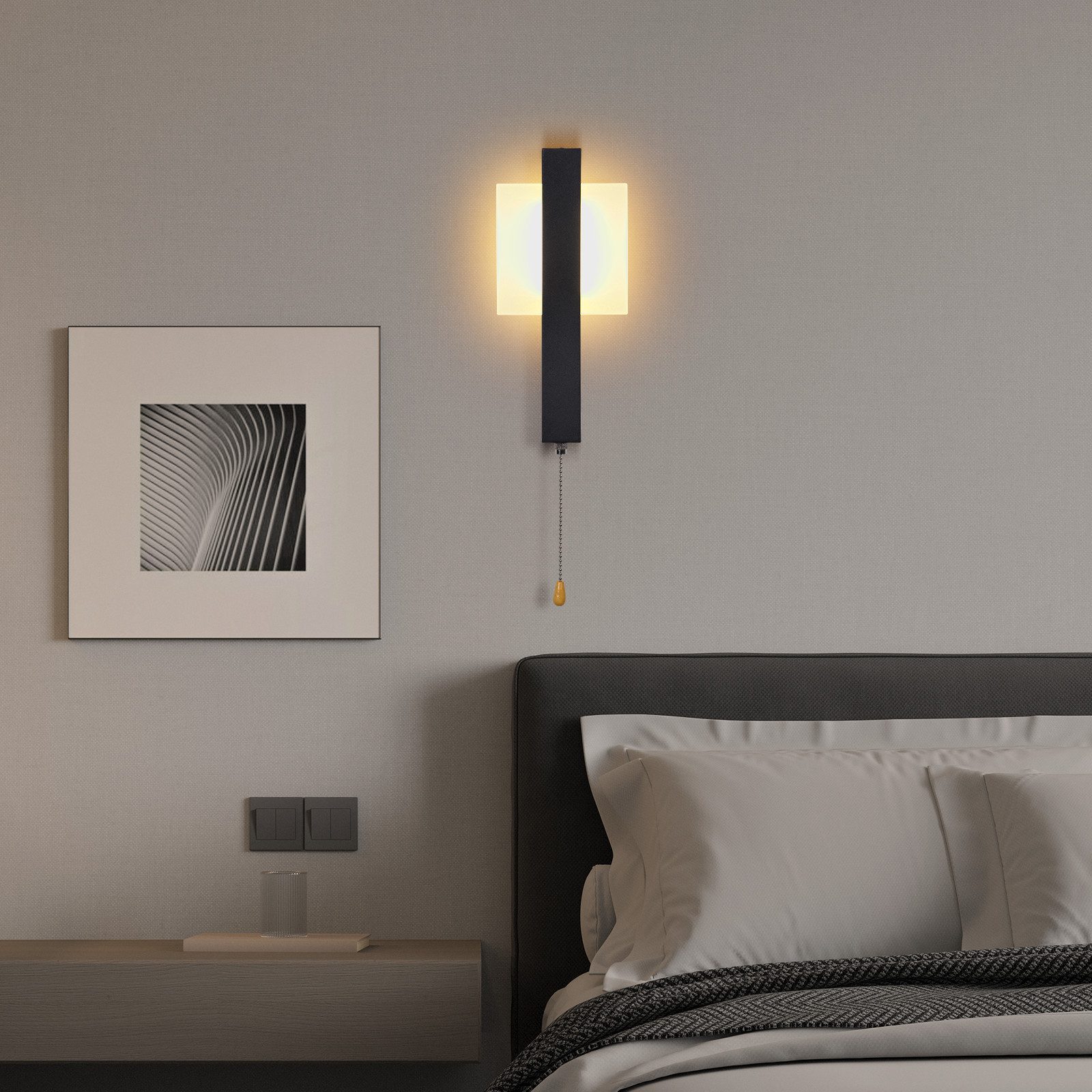 Vetokatkaisija: Seinävalaisimen jalustassa on tyylikäs metallinen vetokatkaisija, jonka sileä/tyylikäs pinta on helppo käyttää. Sen päässä oleva pyöristetty puulenkki tarjoaa miellyttävän otteen/tuo luonnollisen lämpöä designiin. Kylmän tyylikäs metalli/lämpimänpuoleinen puu luovat herkän tasapainon, jonka avulla voit kytkeä valon päälle/pois yhdellä napin painalluksella.