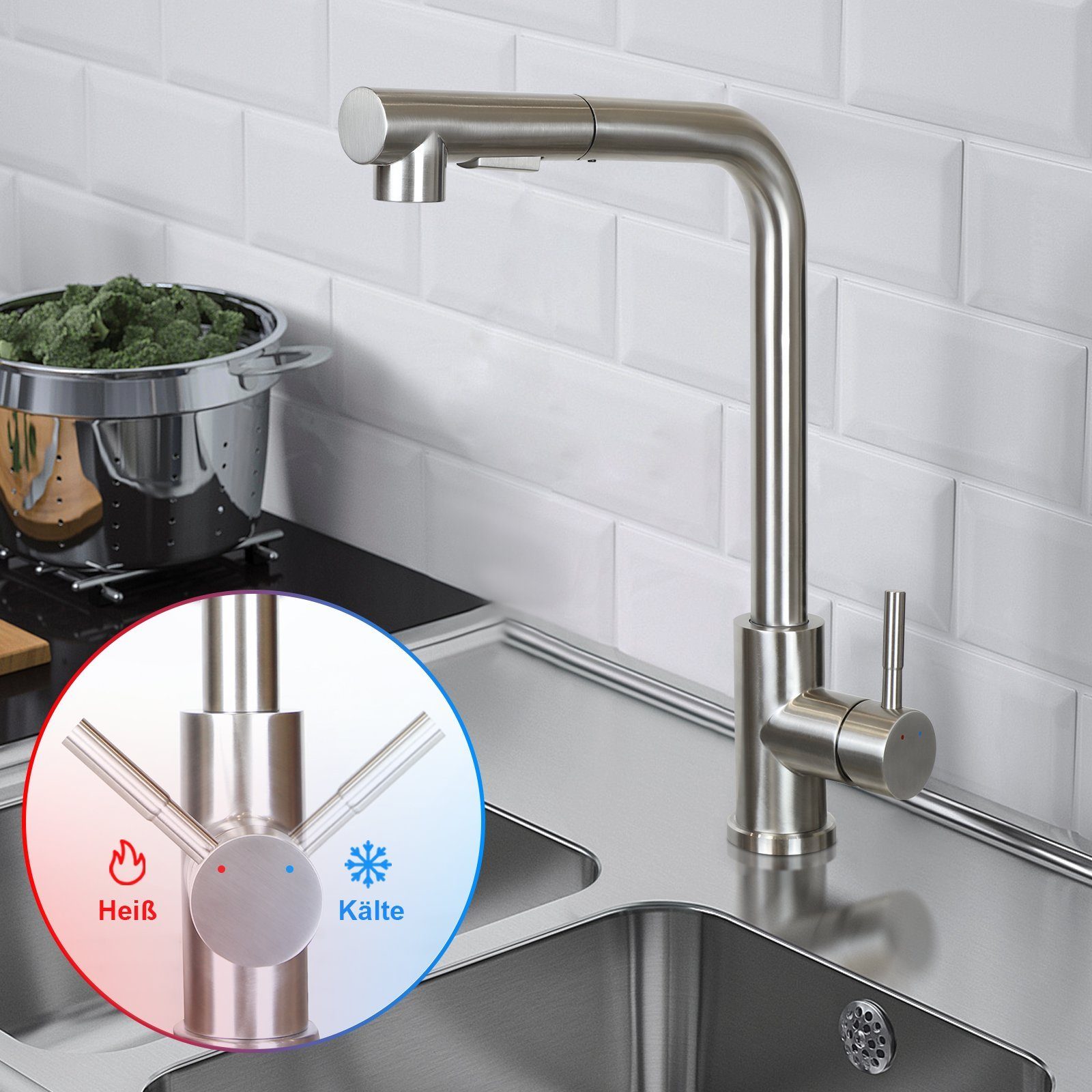 KORKEALAATUINEN MATERIAALI: Ulosvedettävä keittiöhana on valmistettu korkealaatuisesta ruostumattomasta teräksestä. Se on korroosionkestävä, naarmuuntumaton ja lyijytön. Keraaminen kasetti varmistaa hyvän tiivistyksen ja estää vuodot, mikä tekee siitä hyvän apulaisen keittiössä.