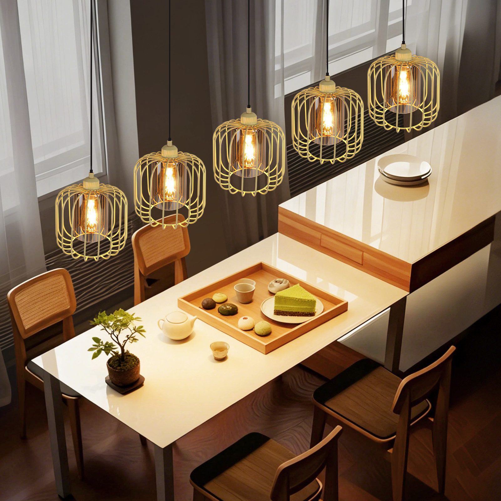 Korkeussäädettävä: Tässä ruokailuhuoneen riippuvalaisimessa on joustava, jopa 130 cm:n pituinen ripustusvaijeri. Näin voit helposti säätää ripustuskorkeutta huoneesi tarpeiden ja henkilökohtaisten mieltymysten mukaan, varmistaen, että se täydentää täydellisesti kokonaisilmettä ja täyttää erilaisten tilanteiden valaistusvaatimukset.