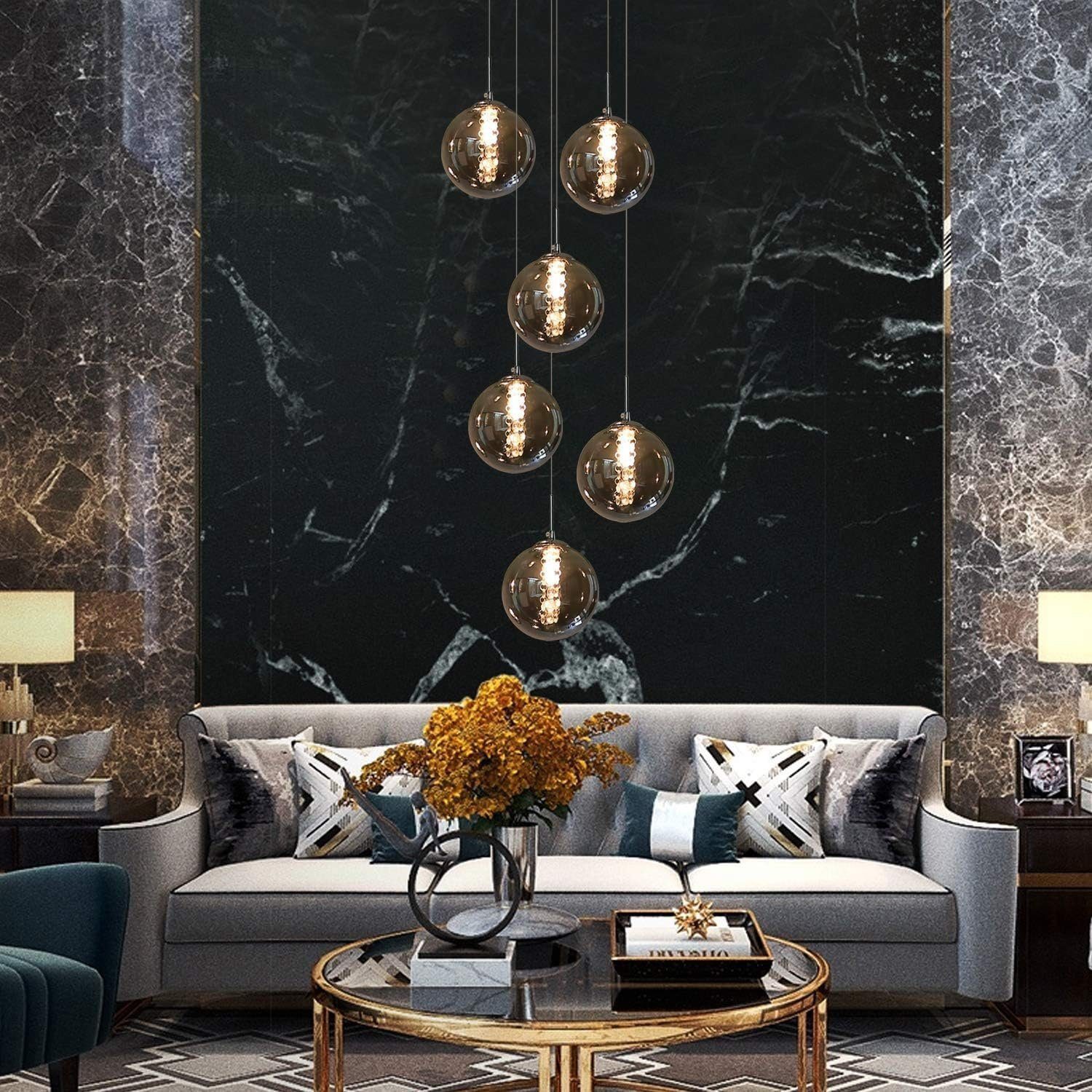 Trendikäs muotoilu: Lasipallovalaisin, moderni, loft- ja maalaistyyli, sopii kaikkiin sisustustyyleihin ja luo sopivan tunnelman huoneeseen, sekä valaistukseen että sisustukseen. Tuotteen mitat - halkaisija ø15 cm (jokainen pallo harmaa), kattopaneelin koko: Φ31*3,5 cm, jännite: 230 V, kaapelin pituus: 1,5 m. Korkeussäädettävä - Tyylikäs riippuvalaisin korkealaatuisella lasirungolla. Pisin riippuvalaisin on 1,5 metriä. Tarvittaessa riippuvalaisimen korkeutta voidaan säätää 80 cm:stä 150 cm:iin, ja se sopii erityisesti portaikkoihin tai julkisiin rakennuksiin. Lämmin tunnelma - Moderni riippuvalaisin on tervetullut lisä huoneisiisi. Modernin mutta yksinkertaisen muotoilunsa ansiosta riippuvalaisin sopii moniin tiloihin, kuten: B. Olohuone, eteinen, keittiö, makuuhuone ja lastenhuone