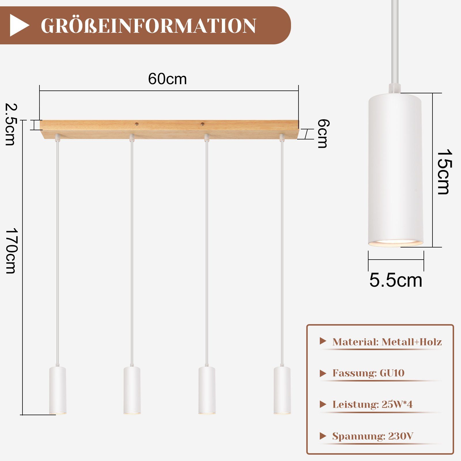Säädettävä pituus: Tämän puisen riippuvalaisimen pituus on enintään 150 cm. Neljän lampun riippuvalaisin sopii täydellisesti huoneeseesi. Voit tehdä siitä juuri tarvitsemasi pituisen. Huomaa: Koska kattokruunun kattotila on rajallinen, virtajohtoa on lyhennettävä, kun sitä on säädettävä. Huomaa, että virtajohdon pituutta voidaan säätää kattokruunun pituuden mukaan.
