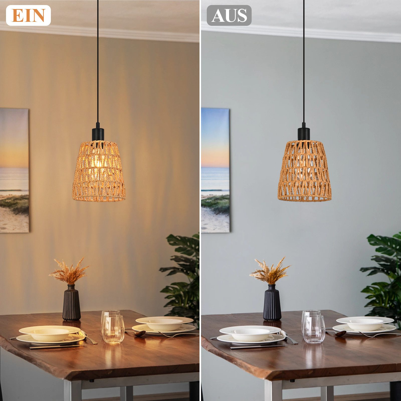 Korkealaatuiset materiaalit: Rottinkisen kattokruunun varjostin on käsin kudottu korkealaatuisesta luonnonpaperiköydestä ja siinä on retrotyylinen mustan ja vaaleanpunaisen värimaailma. Se on turvallinen, ympäristöystävällinen ja myrkytön. Tukeva musta metallinen kiinnike lisää valaisimen kestävyyttä ja varmistaa kevyen mutta vakaan varjostimen.