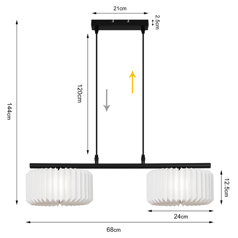Joustavuus ja yhteensopivuus: Riippuvalaisimen pituus on säädettävissä. Voit säätää lampun pituutta vapaasti 0 cm:n ja 120 cm:n välillä, jolloin se sopii ihanteellisesti tilaisuuden ja tarpeidesi mukaan. Lampun suurin valonlähde on 40 W ja tulojännite 220-240 V AC. Se on yhteensopiva G9-lamppujen kanssa. Itse lampussa ei ole valonlähdettä; Voit valita lamput mieltymystesi ja valaistusympäristön mukaan.