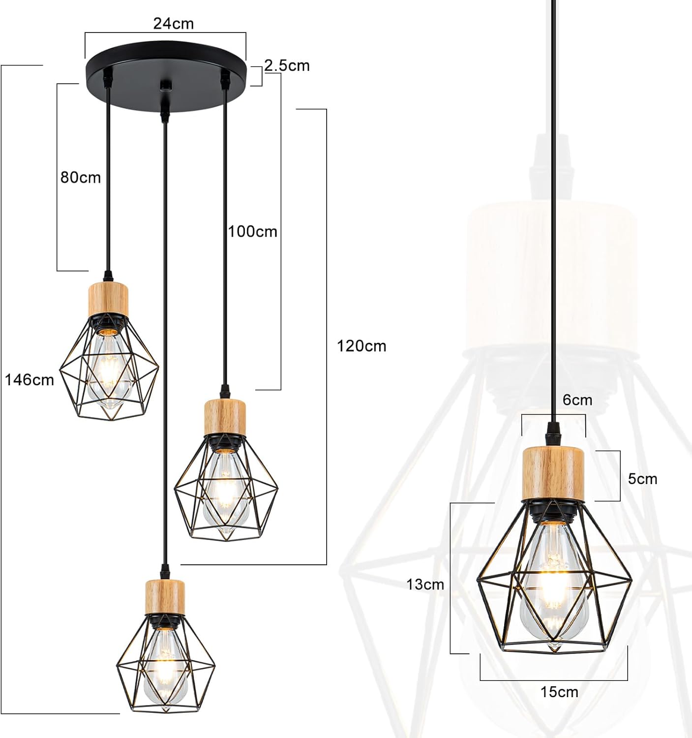 Vakio E27-kanta: Tämä ruokailupöydän rippuvalaisin on sovitettu vakio E27-kantaan ja voit valita haluamasi E27-valonlähteen. HUOM: Valonlähde ei sisälly toimitukseen. Lamppujen enimmäisteho ei saa ylittää 25 W. Tarvitsetpa sitten kirkkaan valaistuksen ruokailupöydällesi tai lempeää tunnelmaa makuuhuoneeseesi, tämä rippuvalaisin mukautuu täydellisesti tarpeisiisi.