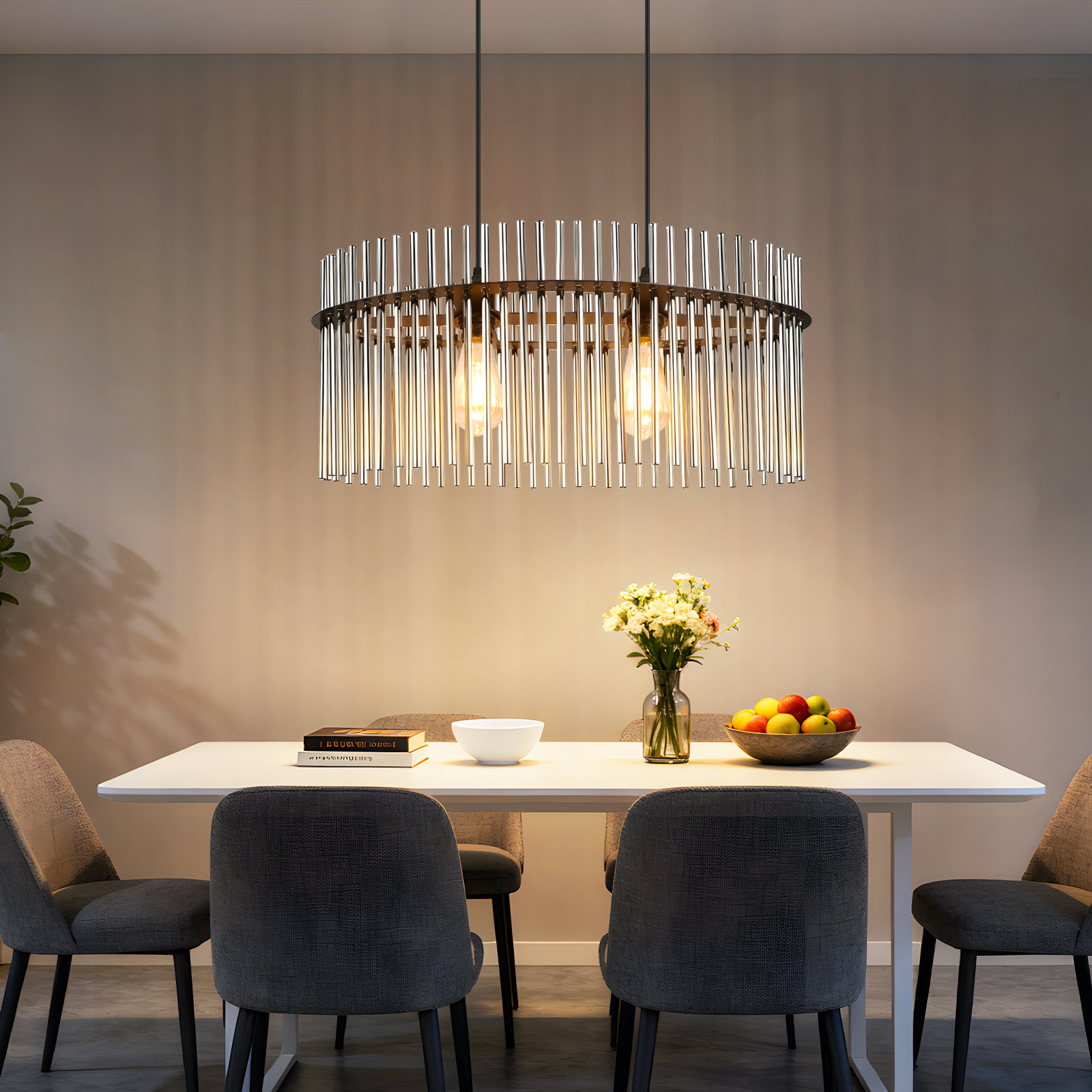 Ylellinen vintage-muotoilu: Tämä ruokapöydän riippuvalaisin yhdistää metallin hienostuneisuuden lasin eleganssiin tyylikkäässä ruokailutilassa. Sen metallirakenne on tukeva ja linjat puhtaat. Päälle kytkettynä tämä musta riippuvalaisin levittää pehmeää, hillittyä valoa luoden retrohenkisen ja hienostuneen tunnelman.