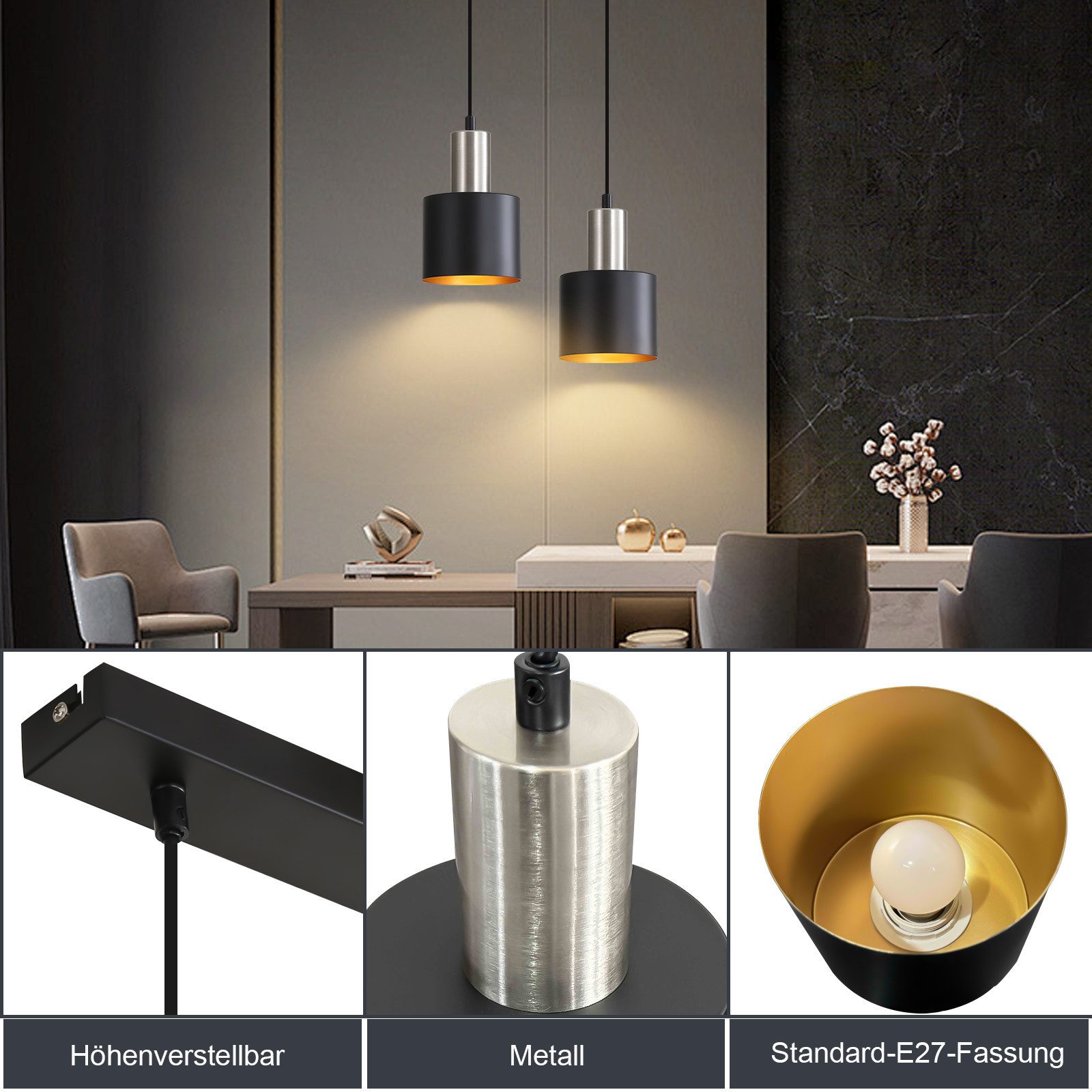 Retro industrial -tyyli: Retro industrial -tyylinsä ansiosta tämä E27-riippuvalaisin sopii täydellisesti moderneihin, vintage- tai loft-tyylisiin sisätiloihin. Klassinen sylinterimäinen lampunvarjostin ja metallirakenne antavat jokaiselle huoneelle erottuvan ilmeen. Ripustettavissa olohuoneen valoissa on musta viimeistely ja kullanvärinen sisäpuoli, mikä antaa ruokapöydän valaisimelle tyylikkään ulkonäön.