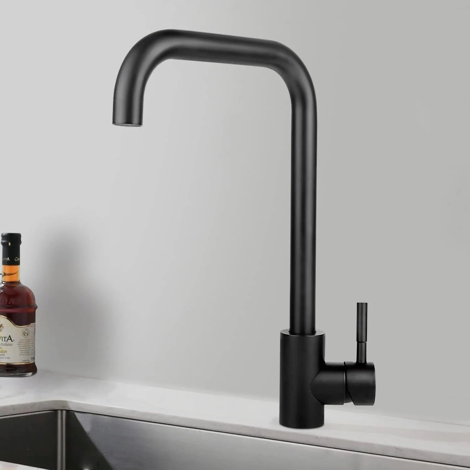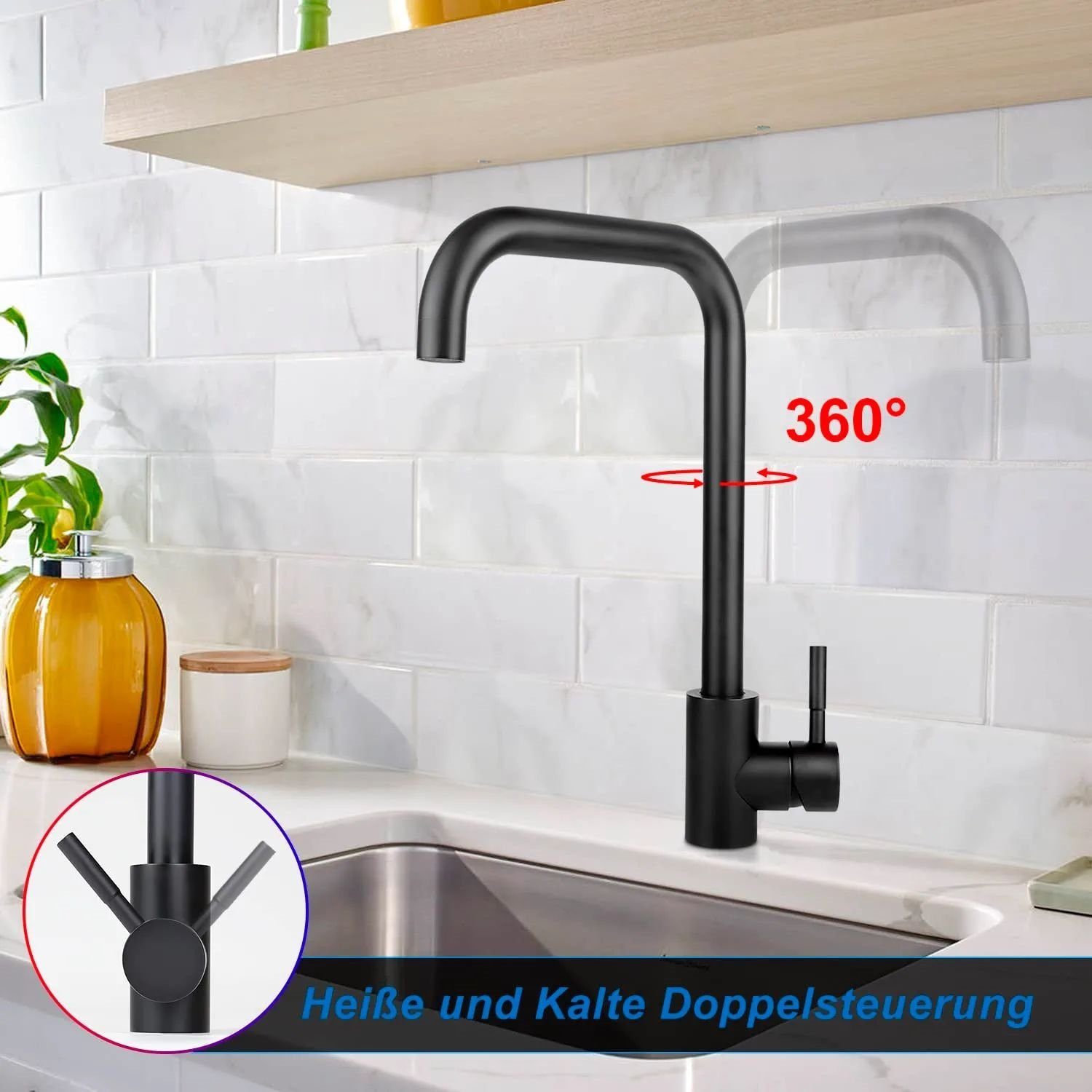 KESTÄVÄ MUOTOILU: Pesuallashana voidaan kääntää 360°, ja juoksuputken korkeus on 250 mm. Yksittäistä kahvaa voidaan säätää oikealle tai vasemmalle tarpeidesi mukaan. Tämä keittiöhana sopii lähes kaikkiin keittiön tiskialtaisiin. LAADUKKAAT MATERIAALIT: Keittiöhana on valmistettu korkealaatuisesta 304 ruostumattomasta teräksestä. Se takaa korroosionkestävyyden, naarmuuntumisenkestävyyden ja lyijyttömän materiaalin. Korkealaatuinen venttiilisydän: keraaminen venttiilisydän varmistaa, että hana ei tiputa tai pidä ääntä miljoonien kylmän ja kuuman veden vaihtotestien ja korkeapaineisten vuototestien jälkeen. HELPPO ASENNUS: Noudata ohjeiden asennusvaiheita, ja voit asentaa ja käyttää tätä käytännöllistä keittiöhanaa muutamassa minuutissa. 32–35 mm asennusreikä, G3/8 liitäntäletku.