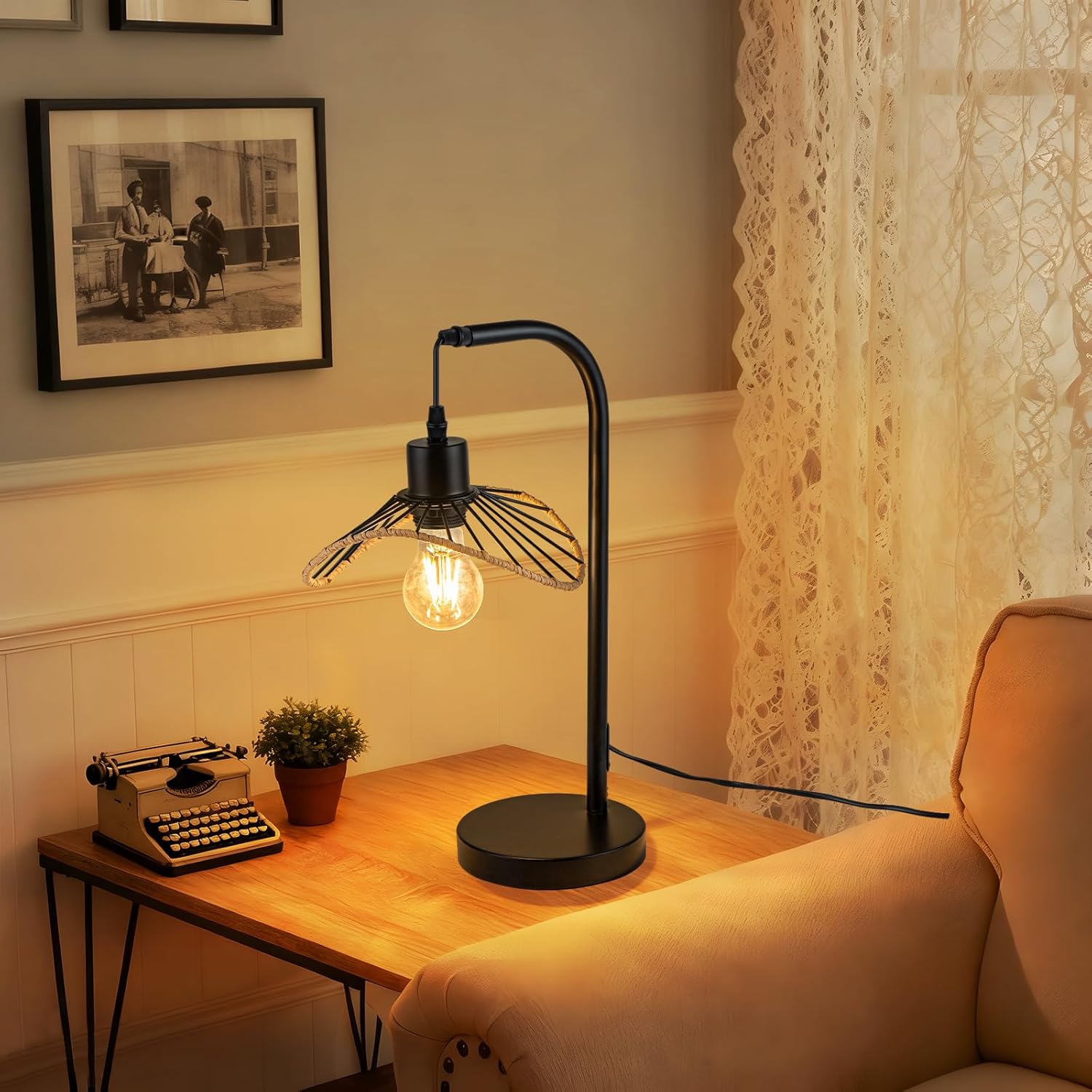 Monipuolinen käyttö: Yövalopöytälampun se sopii täydellisesti sängyn lukemiseen tai yöaikaiseksi sijantivaloksi, joka ei häiritse unirytmiäsi; työhuoneen työvalaisimena tai työtasolla tämän retro-kirjoituspöytävalaisimen selkeä, keskittynyt valo tarjoaa hyvän näkyvyyden, vähentää silmien väsymistä ja parantaa tehokkuutta; olohuoneen koristepöytävalaisimena kaapelilla tällä lampulla on ainutlaatuinen vintage-esteettisyys, joka sulautuu saumattomasti eri sisustustyyyleihin ja muodostuu silmiinpistäväksi koriste-elementiksi.
