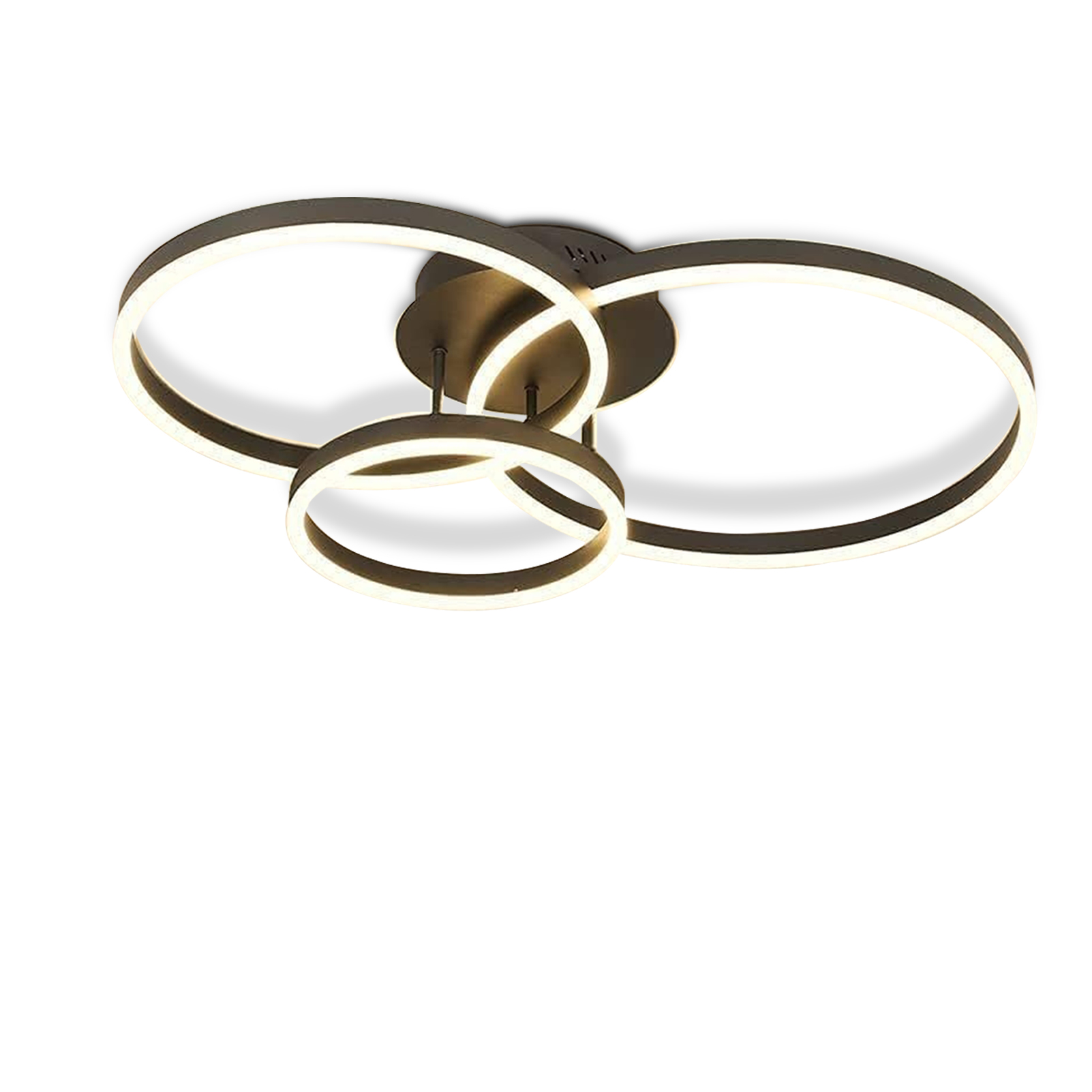 Tutustu tähän ainutlaatuiseen olohuoneen kattovalaisimeen, joka koostuu kolmesta erikokoisesta alumiini- ja akryylirenkaasta. Tämä yhdistelmä tarjoaa erinomaisen kirkkauden ja sopii erinomaisesti suuriin huoneisiin.