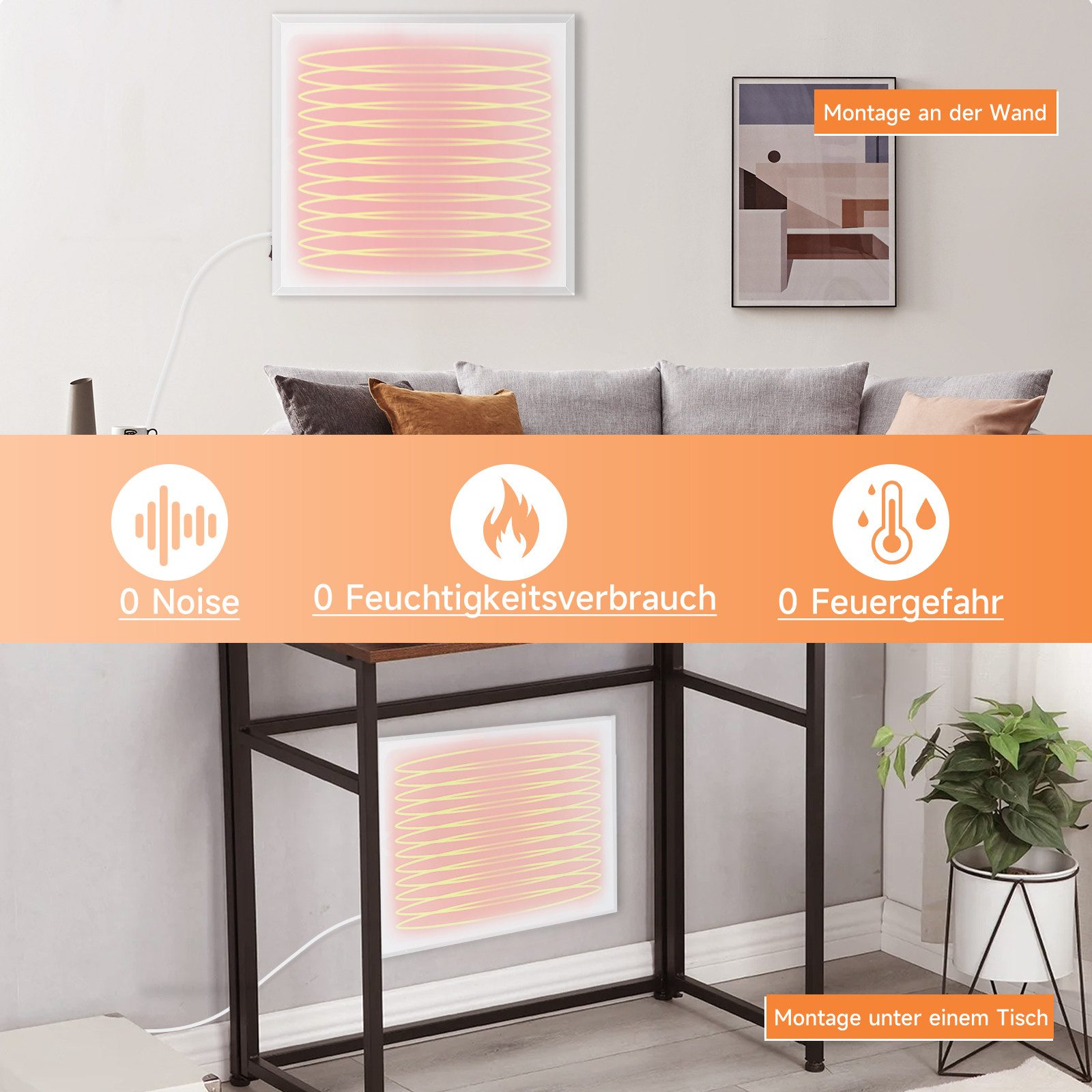 NETTLIFE Seinään asennettava infrapunalämmitin, Energiatehokas 350W ylikuumenemissuojalla, 62x62x1.5cm