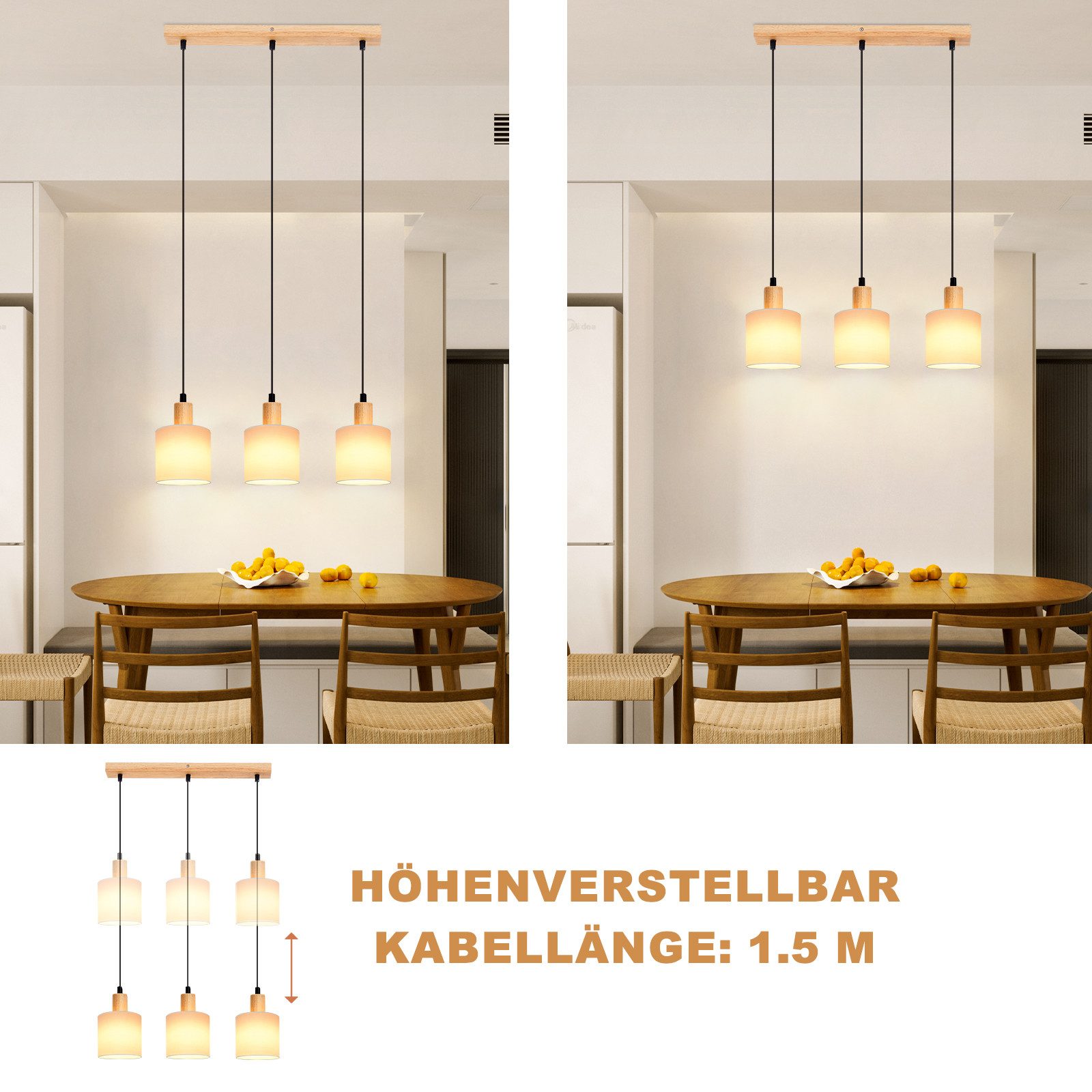 Puinen ja kangasvalaisin: Tämä kolmen valon riippuvalaisin koostuu puisesta pohjasta ja kolmesta eri pituisesta varjostimesta. Valkoinen lampunvarjostin on yksinkertainen ja tyylikäs, joten se sopii erilaisiin asuintiloihin ja tuo puhdasta mukavuutta kotiisi. Puinen pohja on saatavana pyöreänä ja suorana levyn muotoisena, joten voit valita haluamasi tyylin. Puun, metallin ja kangasvarjostimien moderni yhdistelmä tekee tästä modernista ruokapöydän valaisimesta ihanteellisen moderneihin asuintiloihin.