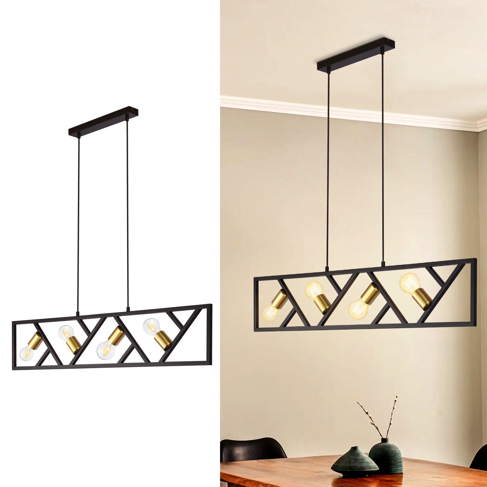 NETTLIFE Vintage mustakultainen riippuvalaisin, 4 liekkiä, E27, metalli, halkaisija 100 cm, retromainen ruokailutilan valaisin