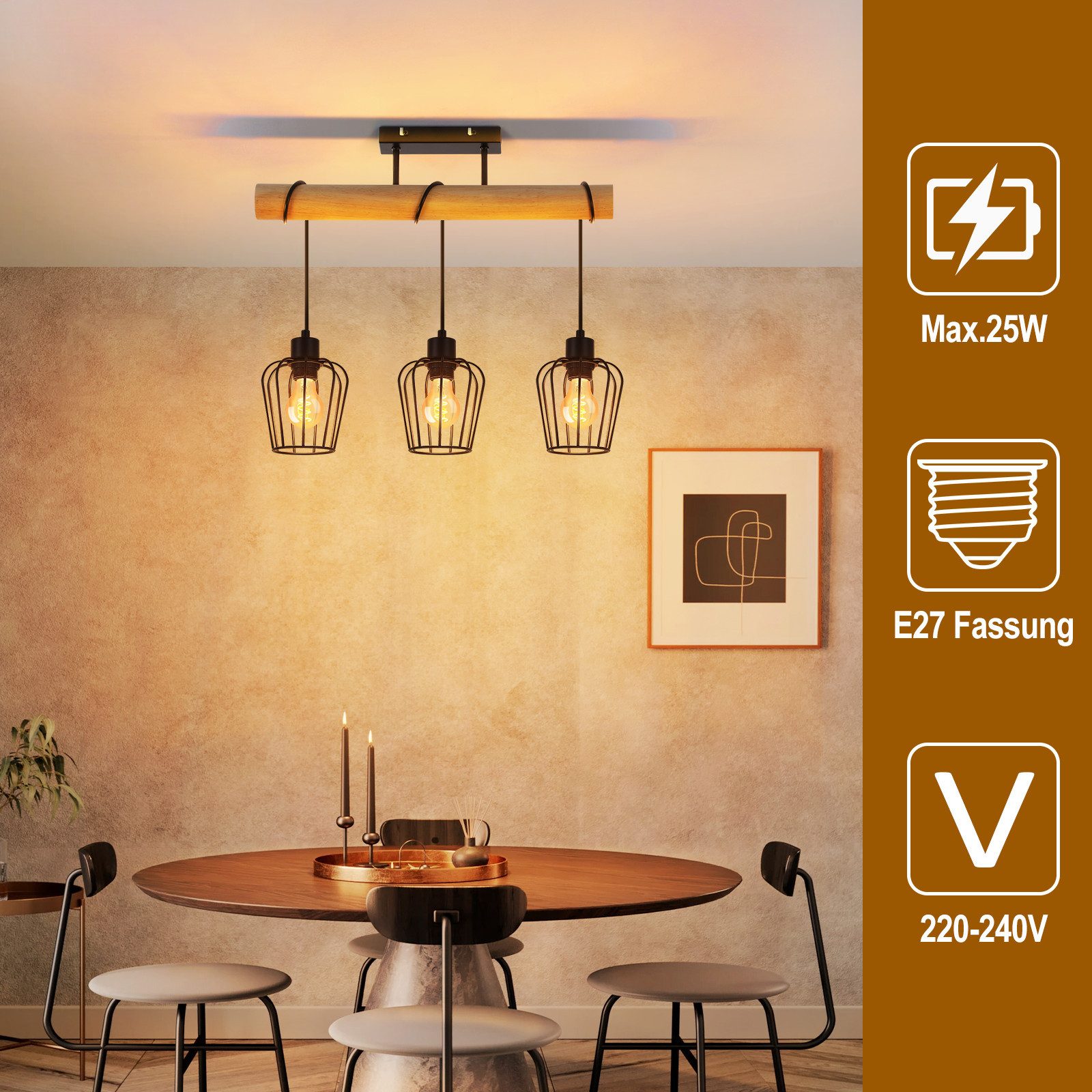 Korkealaatuiset materiaalit: Palkki on valmistettu massiivipuusta, varjostin ja kattokupu metallista. Huolellisen valmistuksen ansiosta varmistamme, että tässä keittiövalaisimessa ei ole teräviä reunoja. Lisäksi sen musta metallinen jalusta on pulverimaalattu, ruostumaton ja helppo asentaa ja puhdistaa.