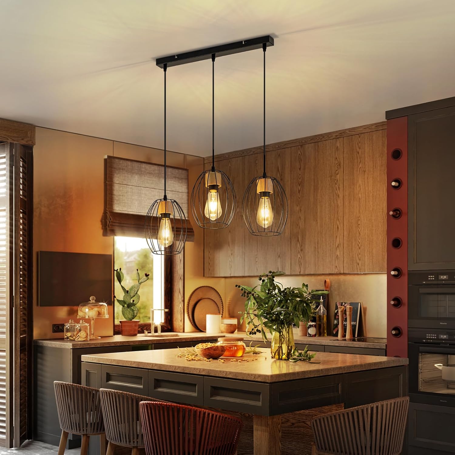 Joustavuus ja säädettävyys: Erityispiirre tässä ruokasalin valaisimessa on, että sen korkeutta voidaan lyhentää. Tämä tarkoittaa, että voit säätää keittiön rippuvalaisimen korkeuden jopa 120 cm pituuteen tarpeidesi mukaan. Kattolevyn koko: 50 x 2,5 cm; Varjostimen koko: 17 x 21 cm. Tämä tarkoittaa, että voit hallita, kuinka ja missä se roikkuu, huoneesi koosta tai asettelusta riippumatta.