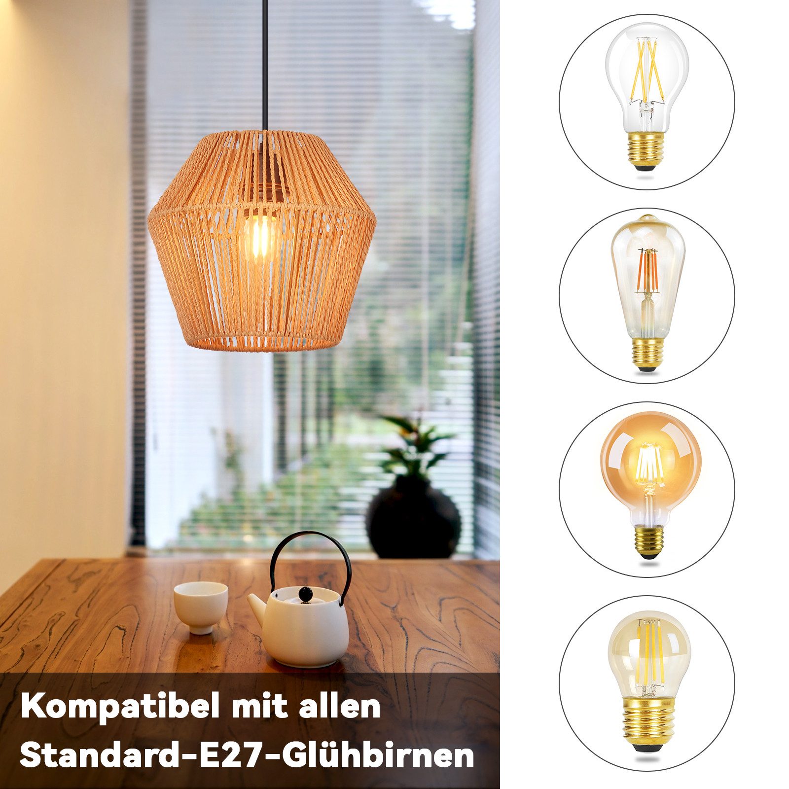 Yhteensopiva erilaisten E27-lamppujen kanssa: Tämä riippuvalaisin tukee erilaisia lampputyyppejä, kuten lämmin valkoinen, neutraali valkoinen, kylmä valkoinen, RGB ja himmennettävät lamput. (Huomautus: Lamppu ei sisälly toimitukseen ja on ostettava erikseen.)
