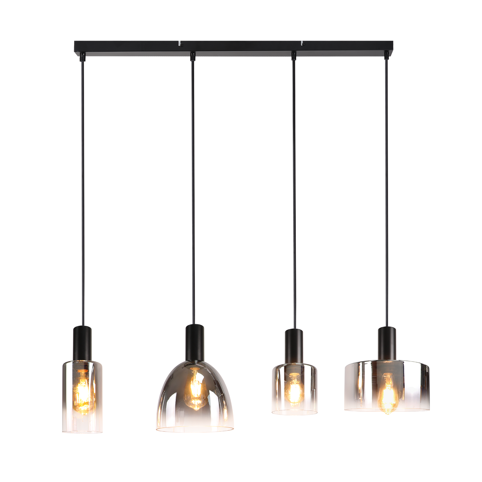 Ainutlaatuinen muotoilu: Tämän ruokapöydän lasisen riippuvalaisimen runko on tukevaa metallia ja lampunvarjostin korkealaatuista lasia, mikä tekee siitä vahvan ja kestävän. Lampunvarjostimia on saatavana eri muodoissa, jotka sopivat erilaisiin sisustustyyleihin luoden ylellisen ja harmonisen tunnelman. Kattokruunun lampunvarjostin on valmistettu mattamustasta, antrasiitinharmaasta lasista liukuvärjäyksellä, mikä jakaa valon tasaisemmin ja lisää syvyyttä ja kerroksellisuutta huoneeseen.