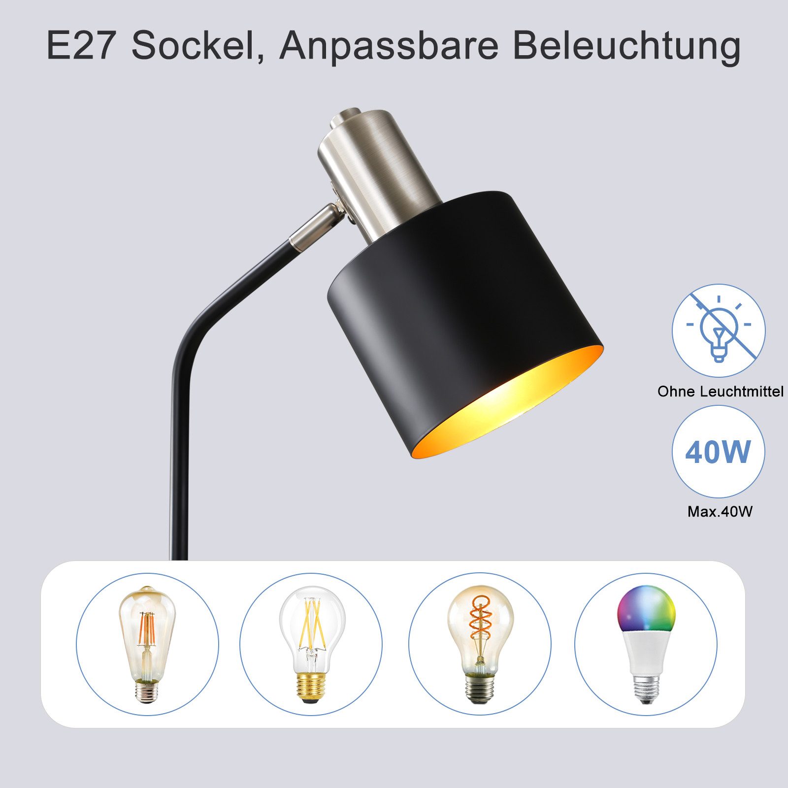 Erinomainen valaistus: Halkaisijaltaan 12 cm:n valaisinpään ansiosta tämä pöytävalaisin tarjoaa optimaalisen tarkennuksen ja laajan valaistusalueen. Koe paras valaistuskokemus E27-pöytävalaisimellamme, joka vie työskentely- tai lukukokemuksesi uudelle tasolle.