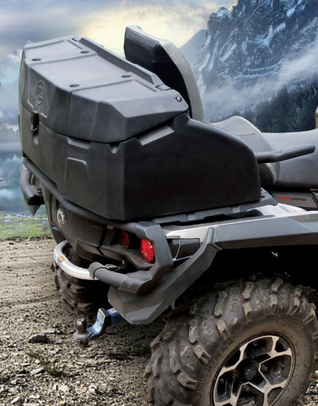 Erittäin laadukas 95 litran lukittava takalaatikko, joka kiinnitetään U-pulteilla mönkijän tarakkaan. Kannessa tiiviste, joten tavarat säilyvät kuivina. Materiaali laadukasta muovia (HDPE), joten kestää hyvin suomen sääolosuhteet. Yhteensopiva kaikkiin yleisimpiin mönkijämalleihin, kuten CF-moto, Polaris, Yamaha, Honda, Can-am, Suzuki, Kymco. Pehmustetut käsinojat sivuilla.
