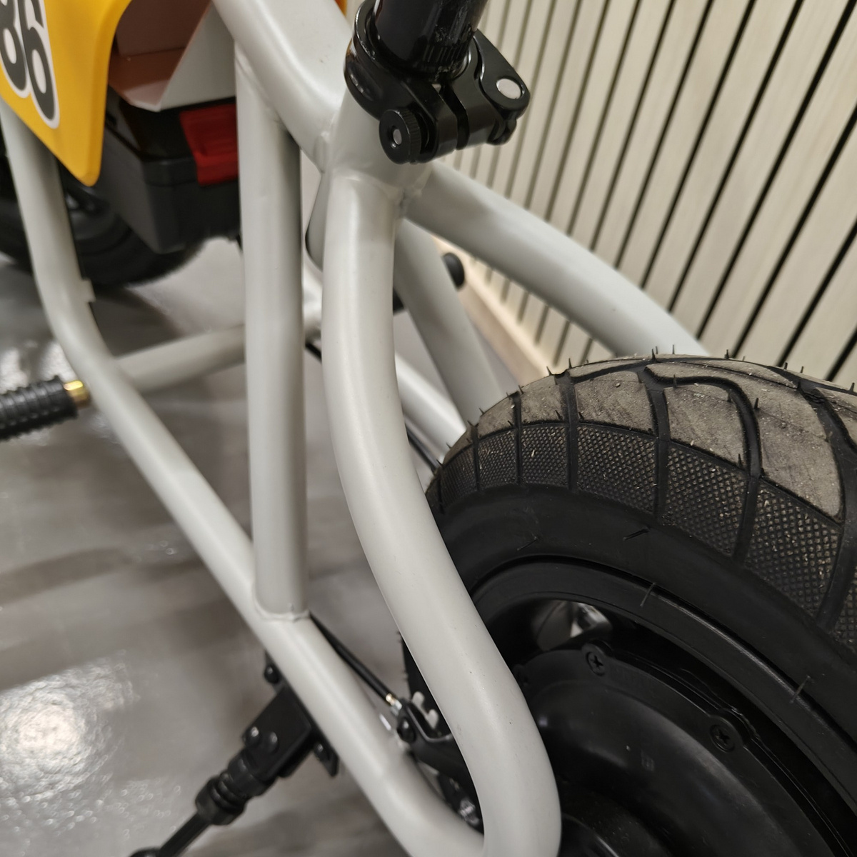 Sähkömopo on varustettu led-ajovalolla ja akkua suojaavalla etulokasuojalla. Hauskuutta ja ajamisen tunnelmaa lisää sisäänrakennettu moottoriääniefekti, joka tarjoaa muhkeat moottoriäänet.