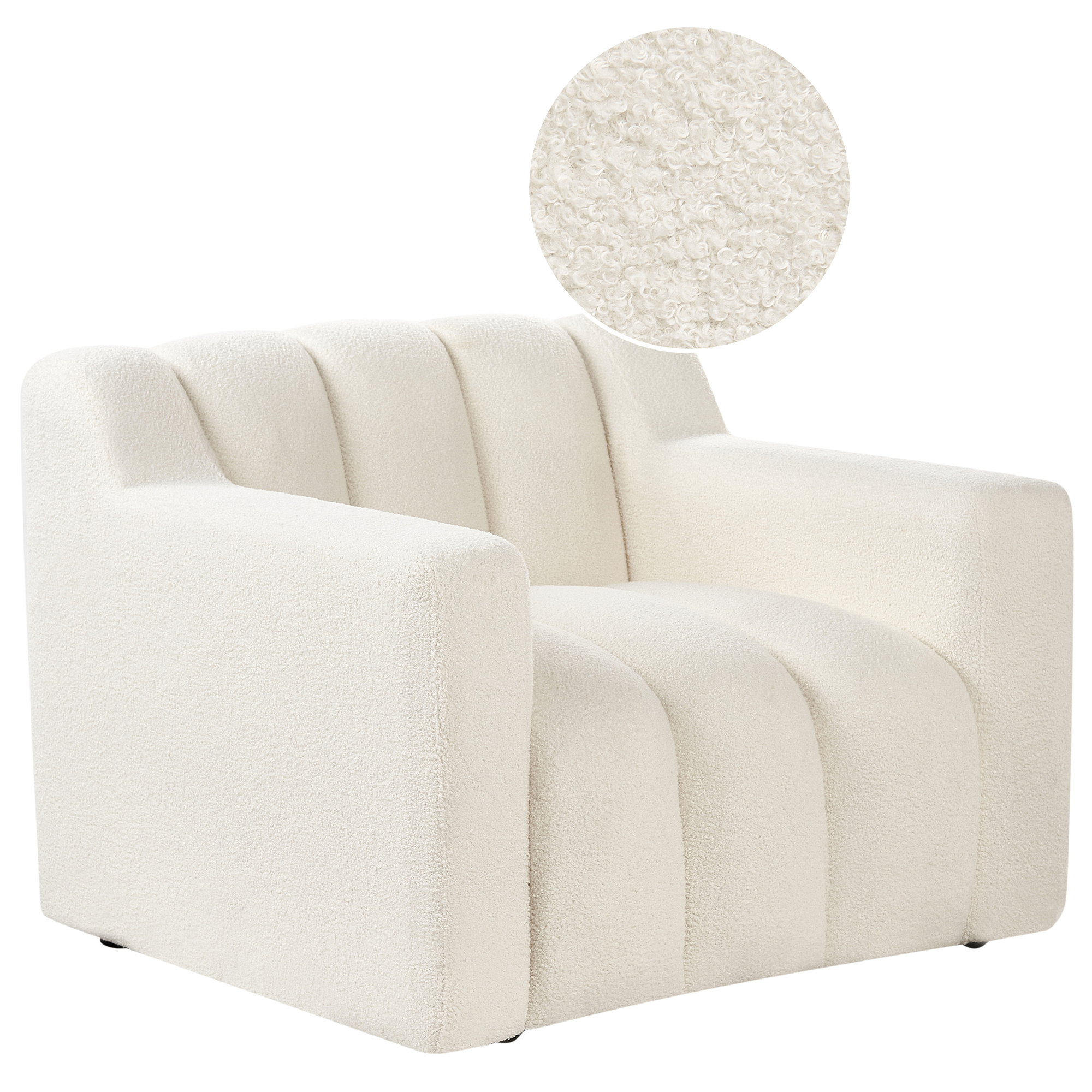 Moderni muhkea nojatuoli tuftauksella. Tämä vankka, bukleekankaalla verhoiltu nojatuoli tuo ripauksen modernia eleganssia mihin tahansa tilaan pehmeällä, teksturoidulla kankaallaan ja tyylikkäällä muotoilullaan. Tilava, syvä istuinosa, pystysuorat tuftaukset sekä tukeva runko tekevät siitä uskomattoman mukavan myös pidempiin rentoutumishetkiin. Tuoli yhdistää vaivattomasti tyylin ja käytännöllisyyden, täydentäen tilaa täydellisesti ja tarjoten viihtyisän paikan kirjan kanssa käpertymiseen.