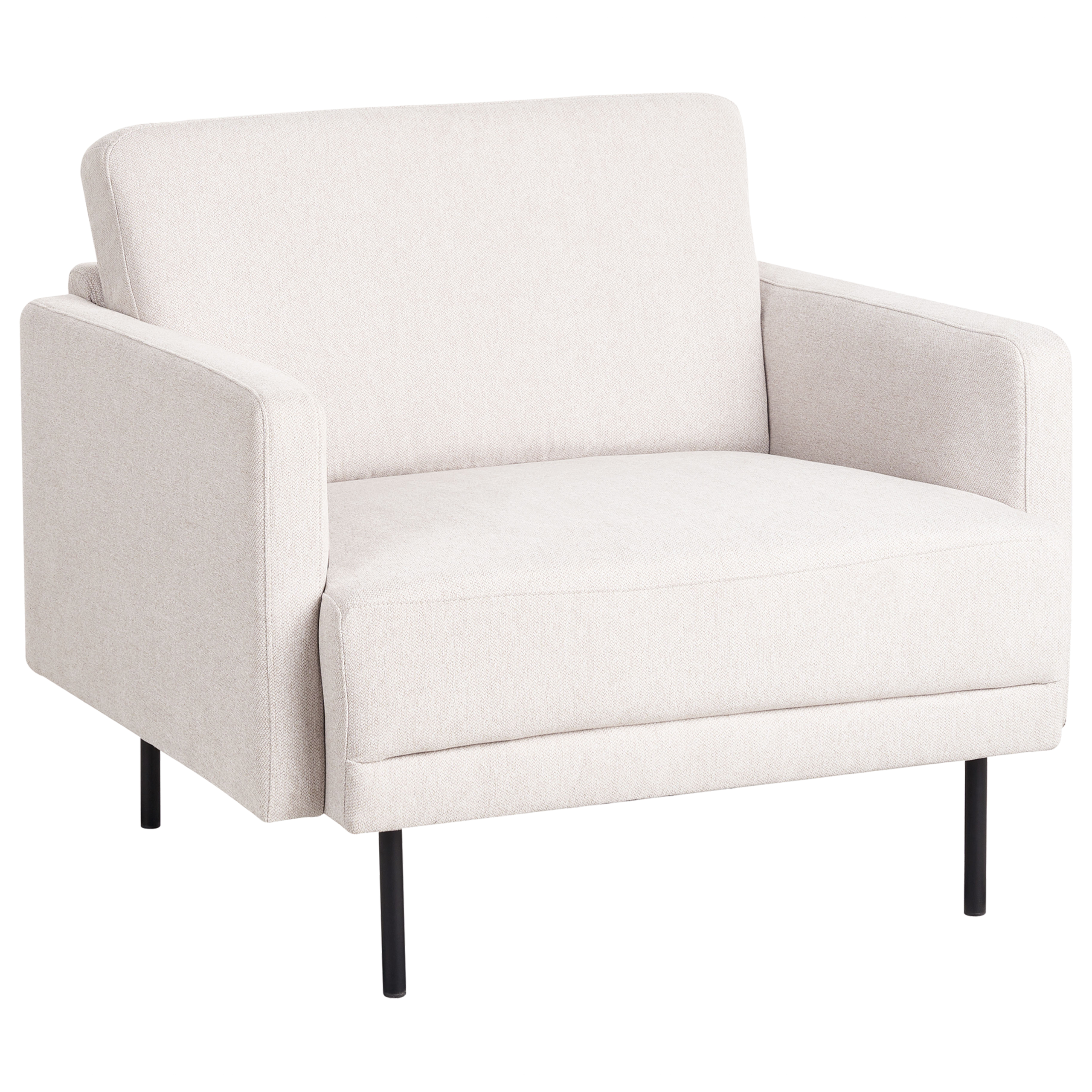Moderni lepotuoli. Nauti modernin asumisen ytimestä tämän upean olohuoneen nojatuolin avulla. Ylellisen mukavalla, vettähylkivällä polyesterikankaalla verhoiltu ja tyylikkäillä mustilla rautajaloilla tuettu tuoli on minimalistinen mestariteos. Sen kiinteän istuinpehmusteen ansiosta voit rentoutua täydessä mukavuudessa. Kohota tilaasi ja iloitse muodon sekä toiminnallisuuden täydellisestä yhdistelmästä.